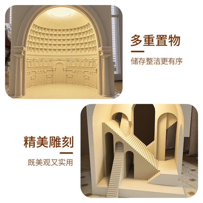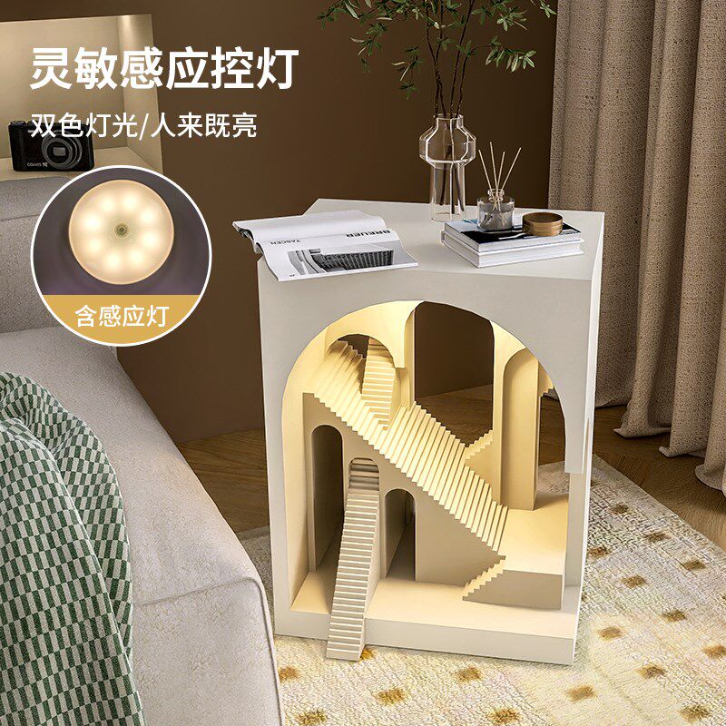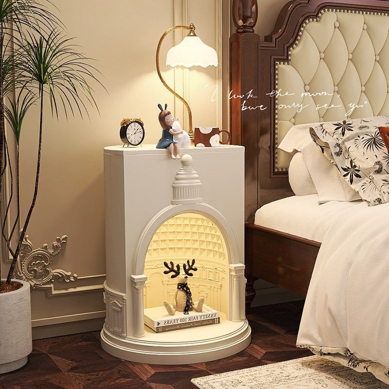 艺术城堡床头柜高级m感卧室落地摆件床边储物柜带灯一体家居装饰