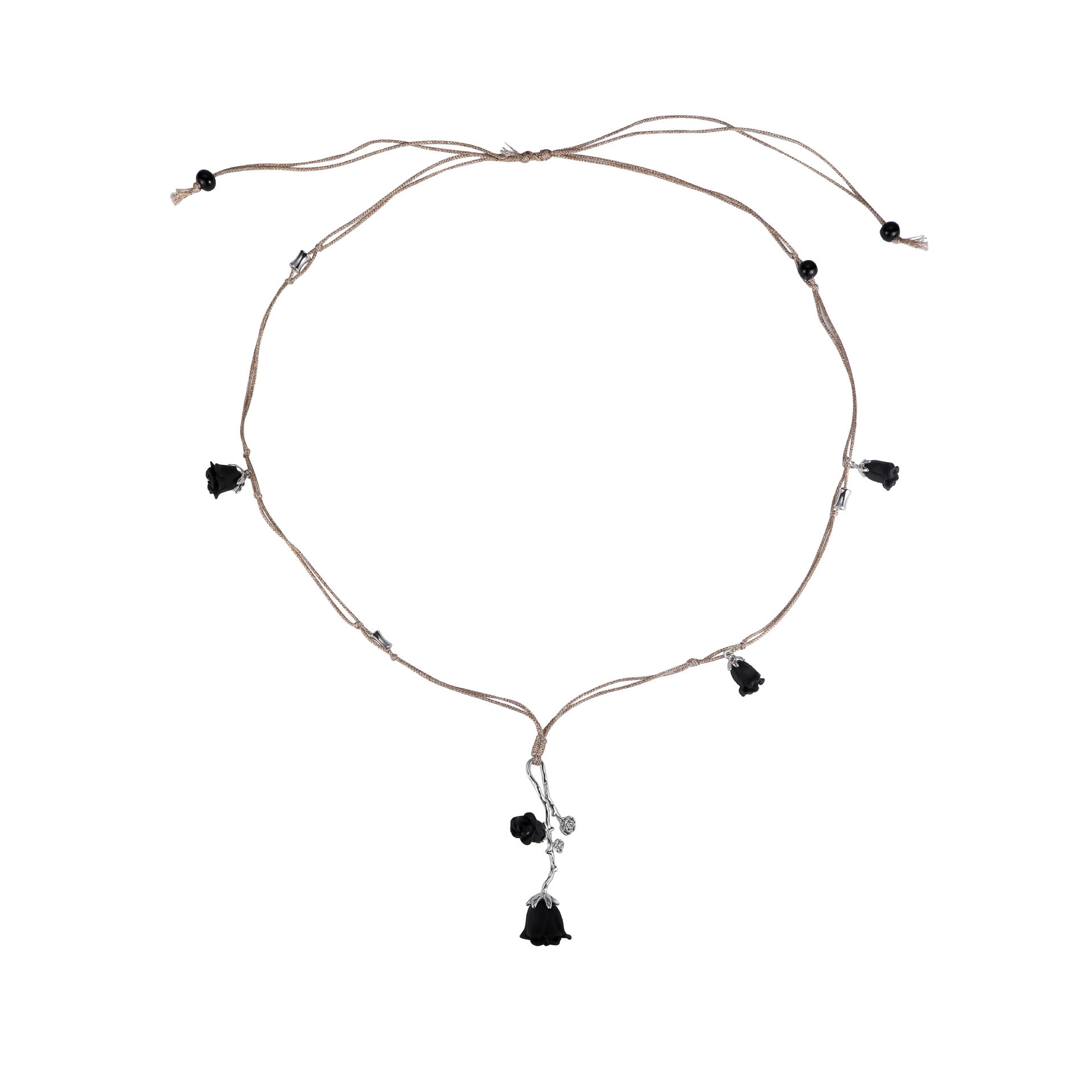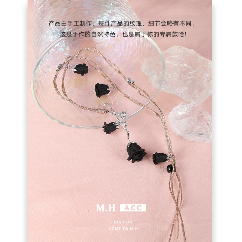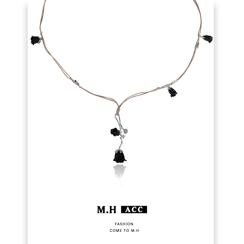 原创设计黑色花朵吊坠项链女锁骨链气质百搭轻奢小众高级配饰项链