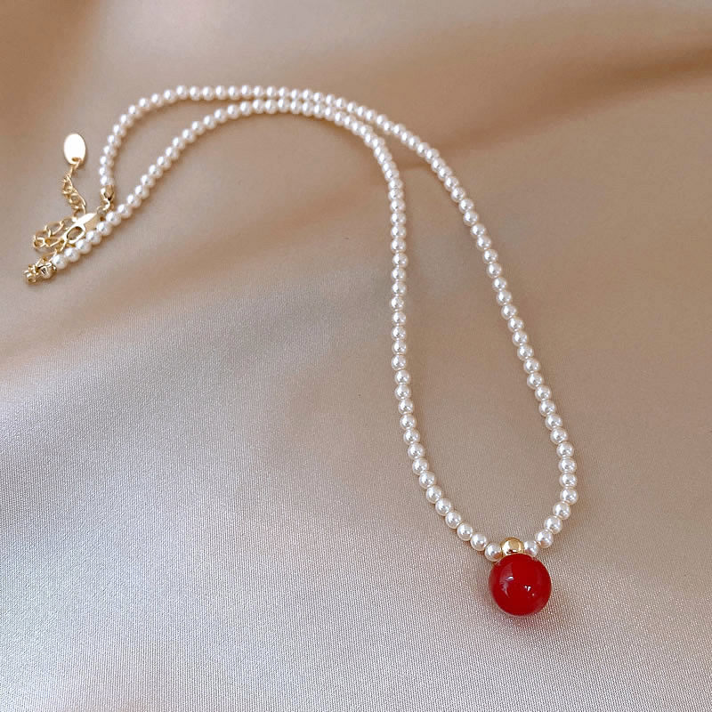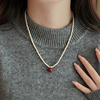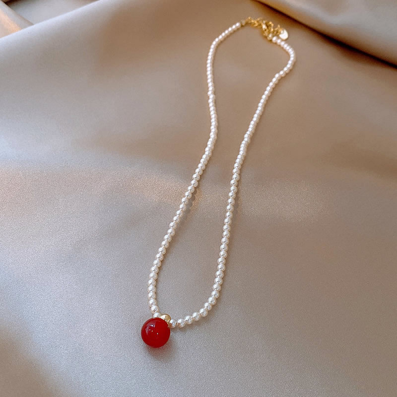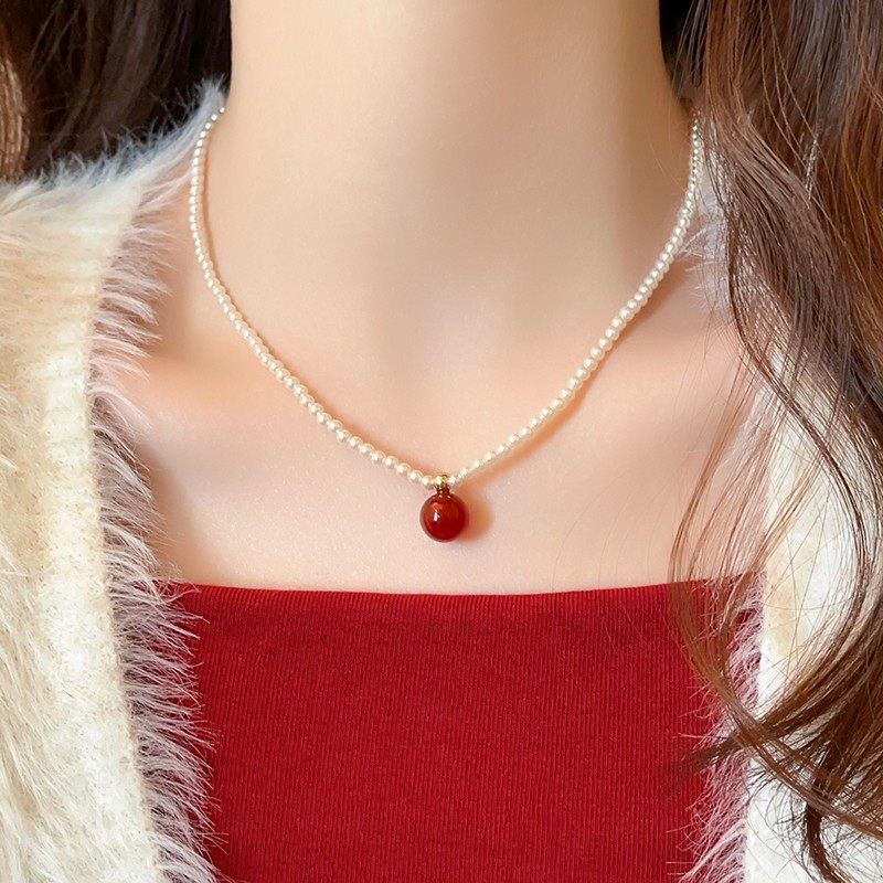 红色玛瑙施家小米珍珠项链女大气高档高级感轻奢毛衣链秋冬配饰品