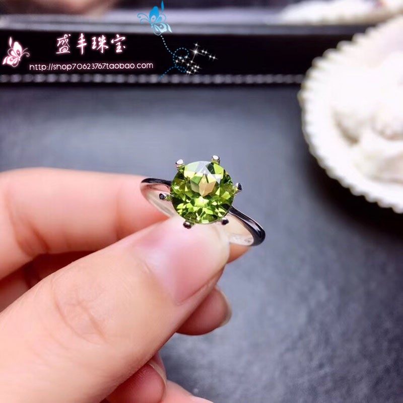 天然橄榄石戒指吊坠 s925纯银绿色宝石女指环 水晶戒指镶钻石女戒