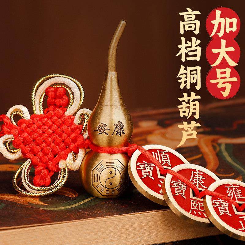 黄铜朱砂五帝钱葫芦挂件加厚加大门对门一对真品招聚财平安挂饰品