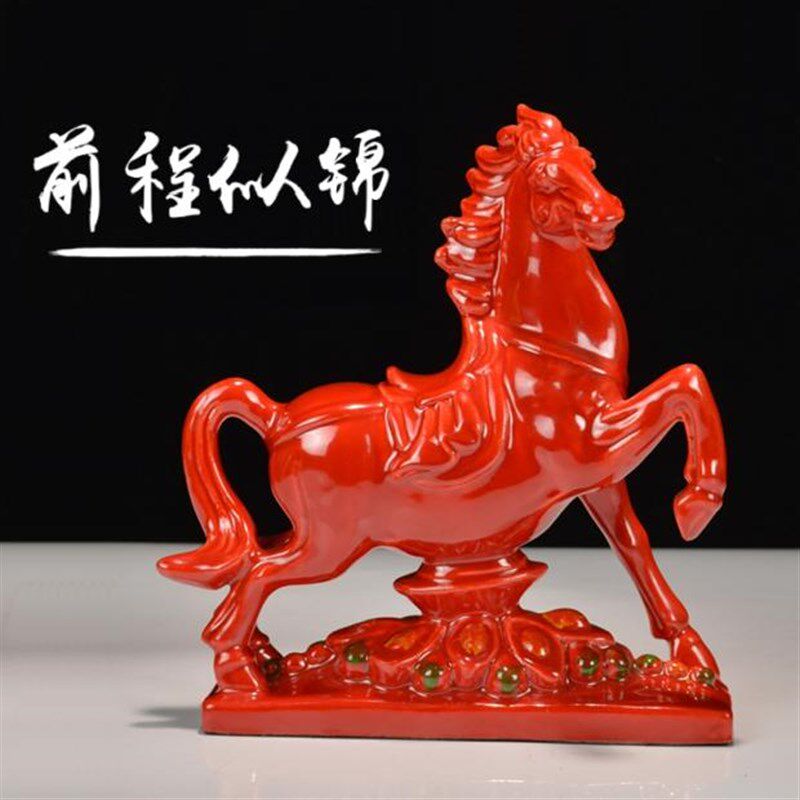 红色陶瓷马 中考高考吉祥物前程似锦 学生书房装饰品马到成功摆件