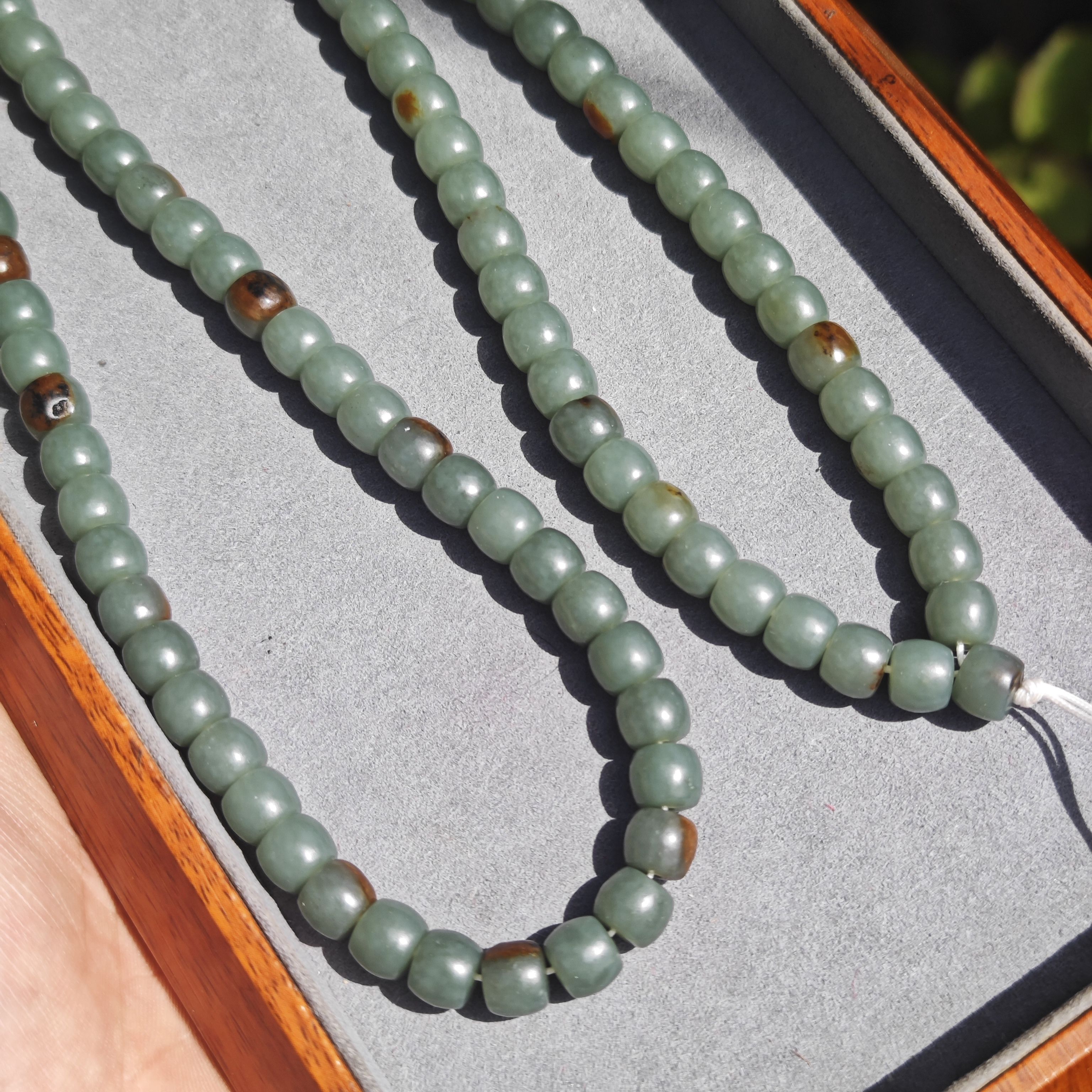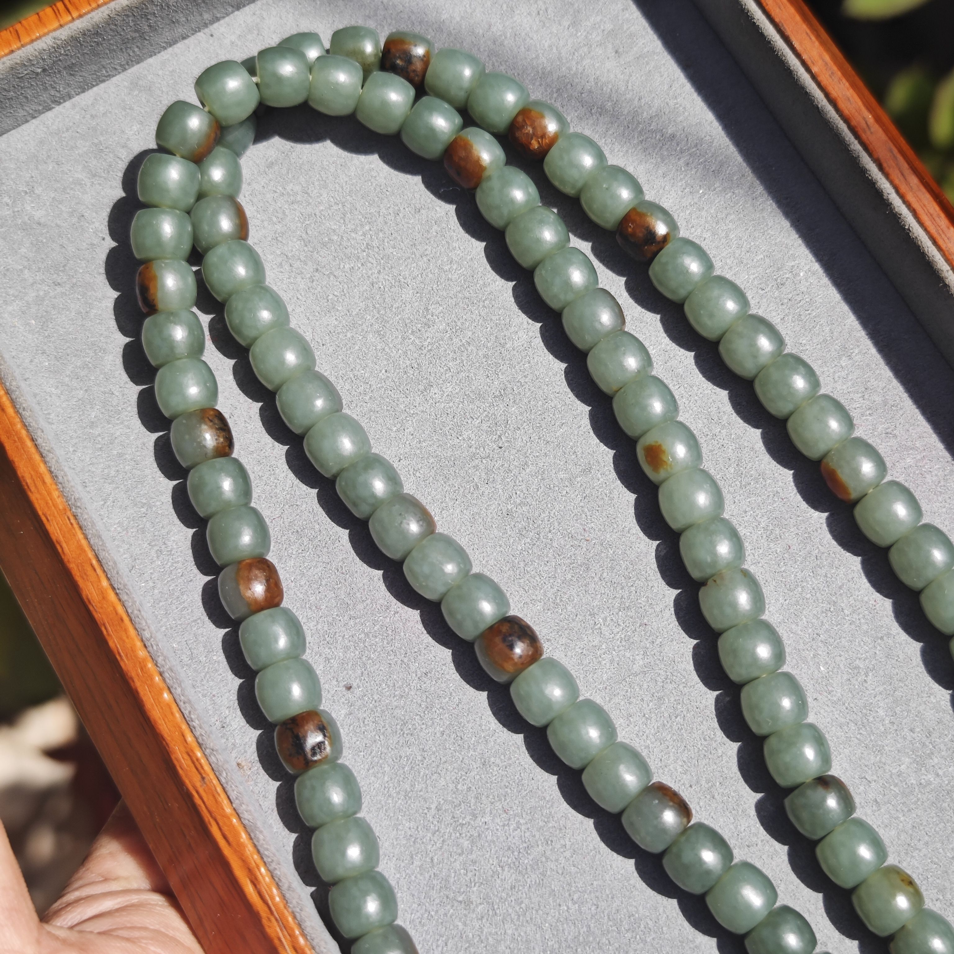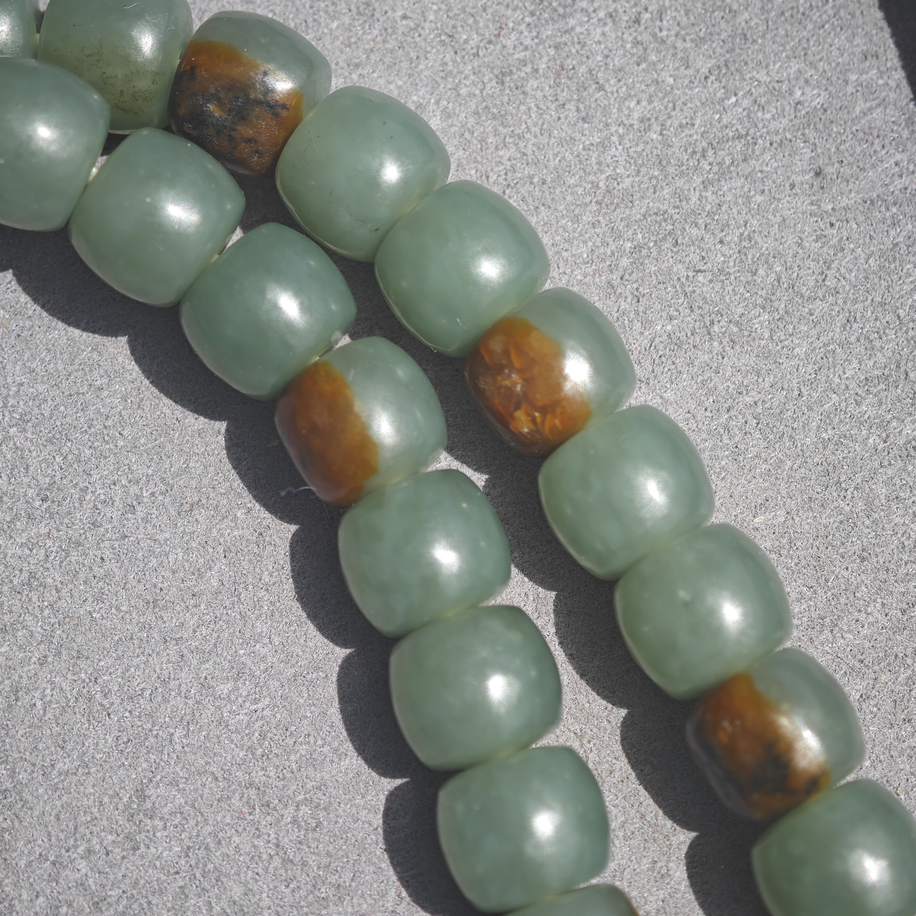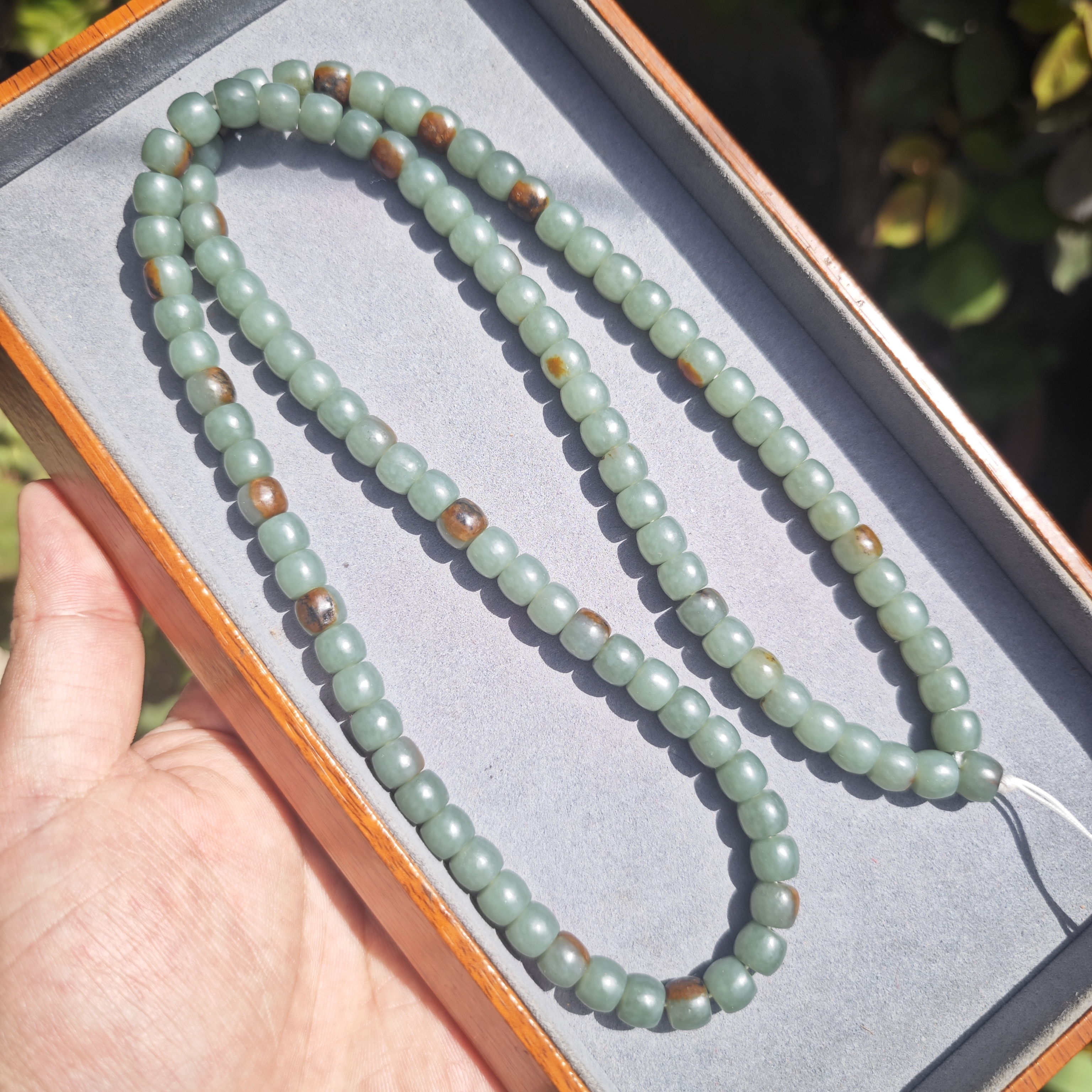 新品新疆和田玉籽料沙枣青蓝调7*8直切老型珠黄沁皮天然原色老熟