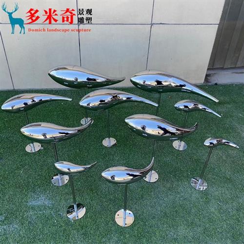 简约不锈钢鱼雕塑庭院售楼部水池定制小鱼装饰品景观流水鱼群摆件