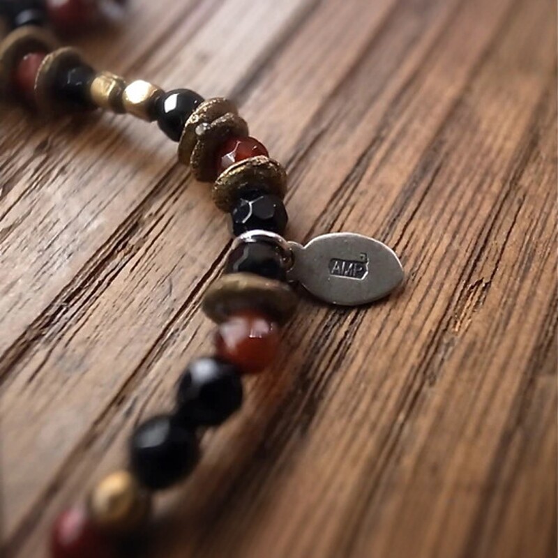 amp japan / 19cm“red agate & onyx”玛瑙手链 11AHK-690