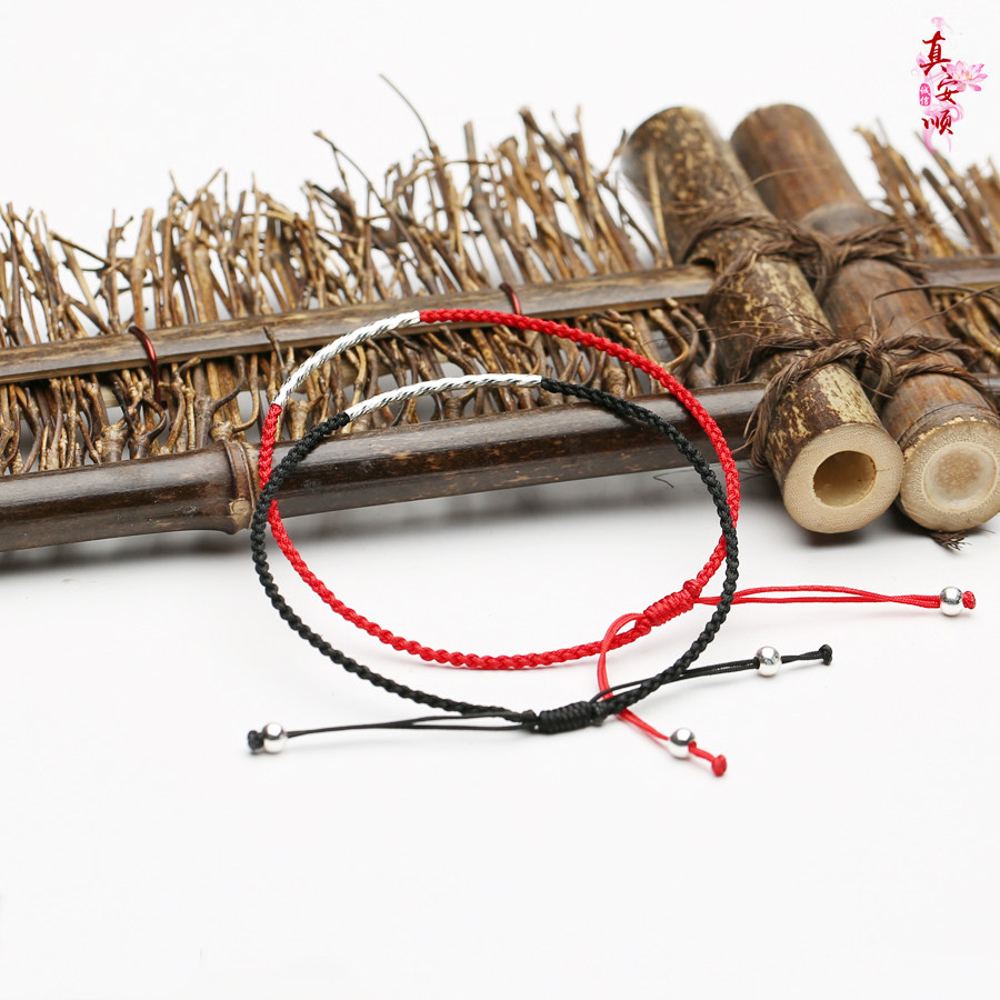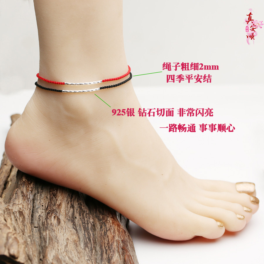 真安顺本命年黑色脚链手工红绳手链925银饰男女情侣礼物事事顺心