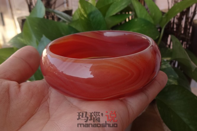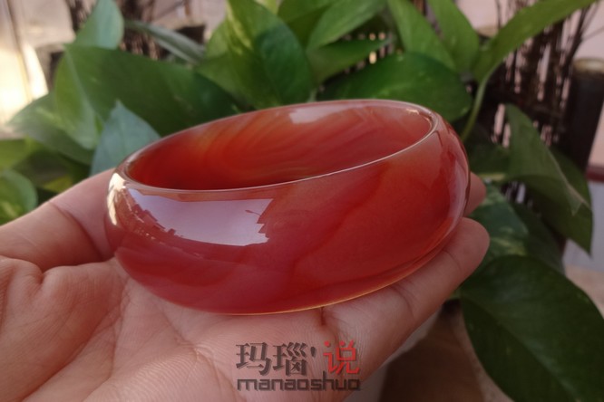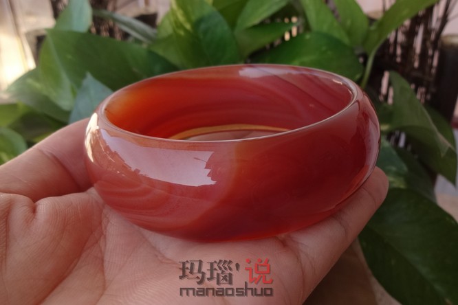 【玛瑙说】巴西纯天然红朱砂玛瑙手镯加宽加厚镯子复古手环女60mm