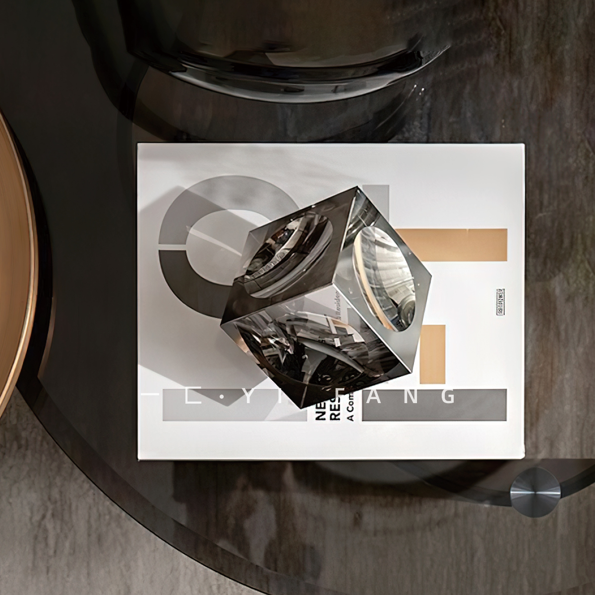 一匚现代电镀水晶花器琥珀几何装饰搭配售楼处样板间客厅茶几摆件