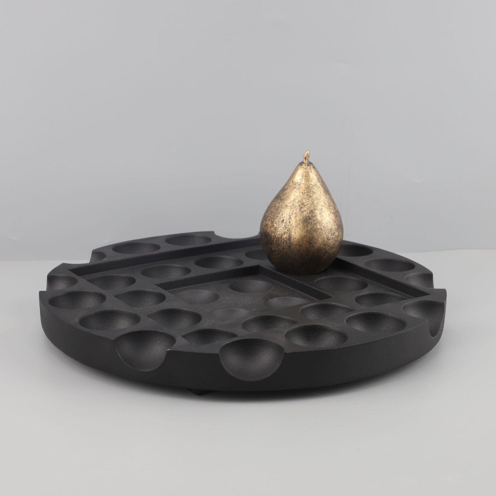 现代简约黑色洞洞果盘摆件客厅样板间茶几玄关桌面家居装饰品