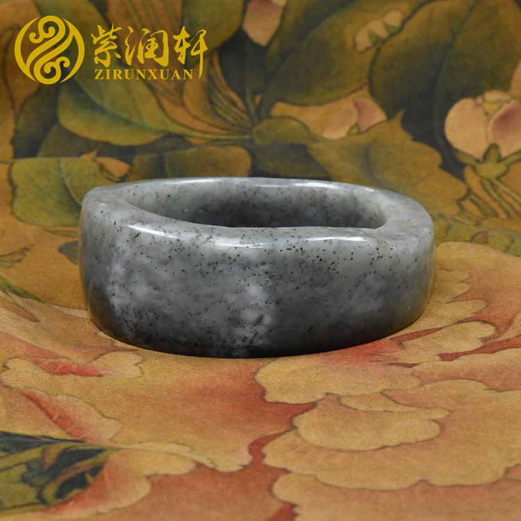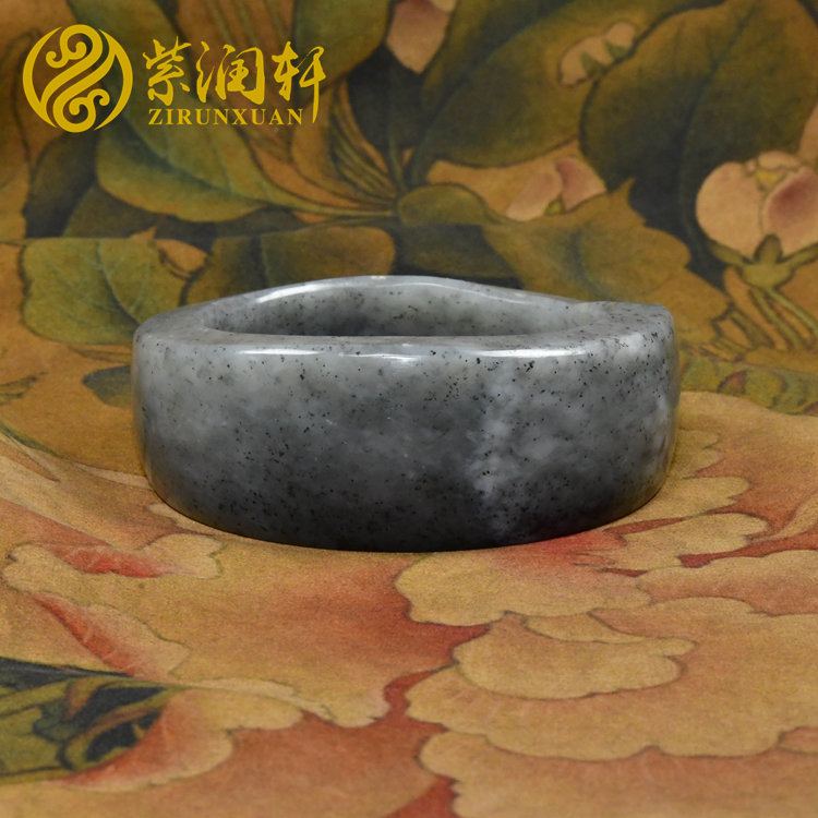 紫润轩新疆和田玉青花籽料手镯随形满皮57 5MM点墨水墨籽镯收藏级