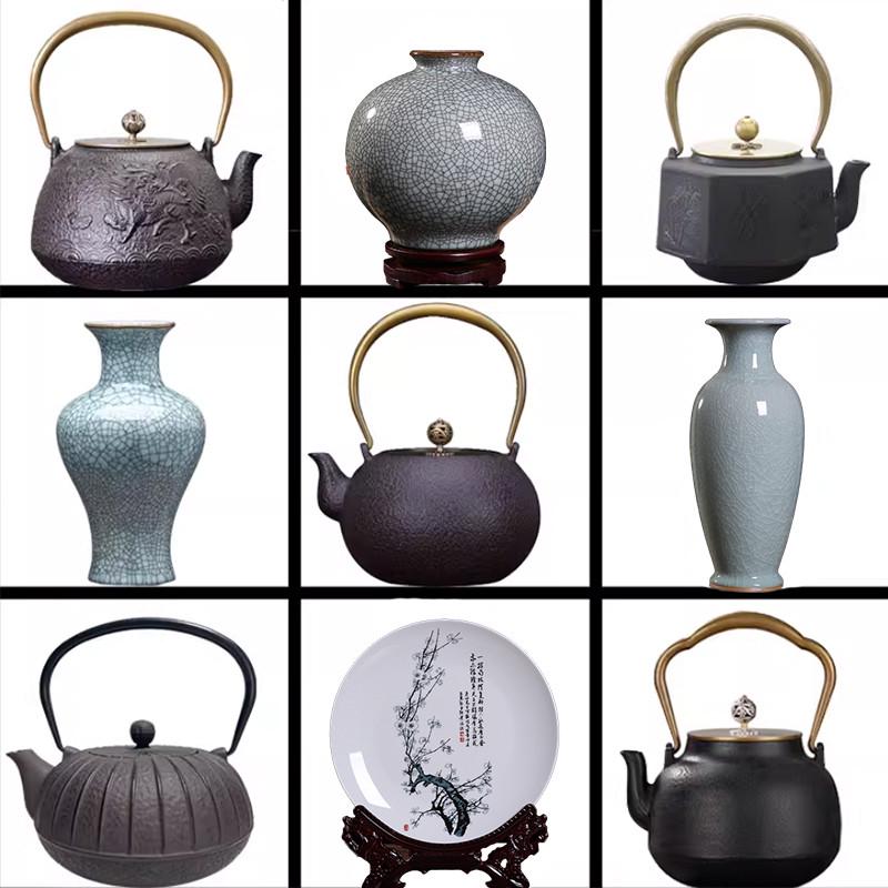 新中式家居摆设样板房间软装饰品茶室铁壶茶壶茶具博古架摆件花瓶