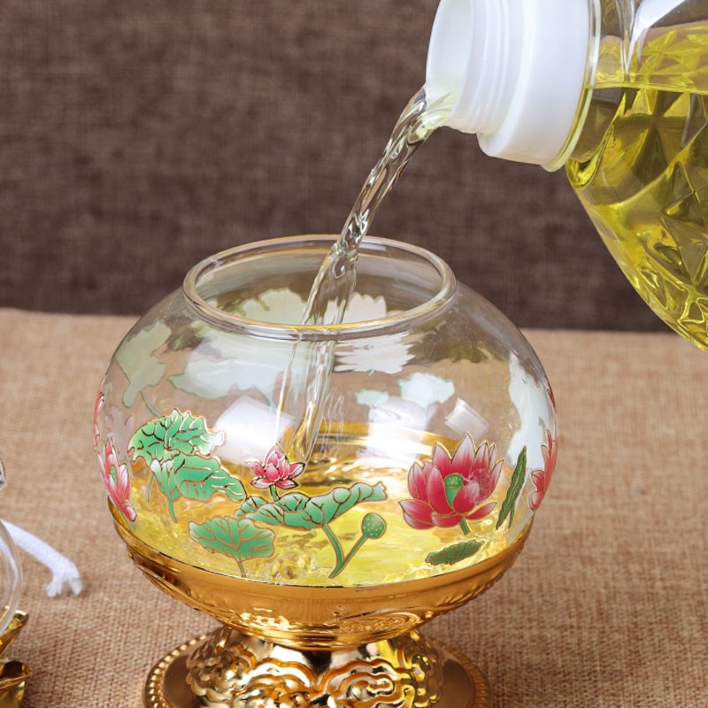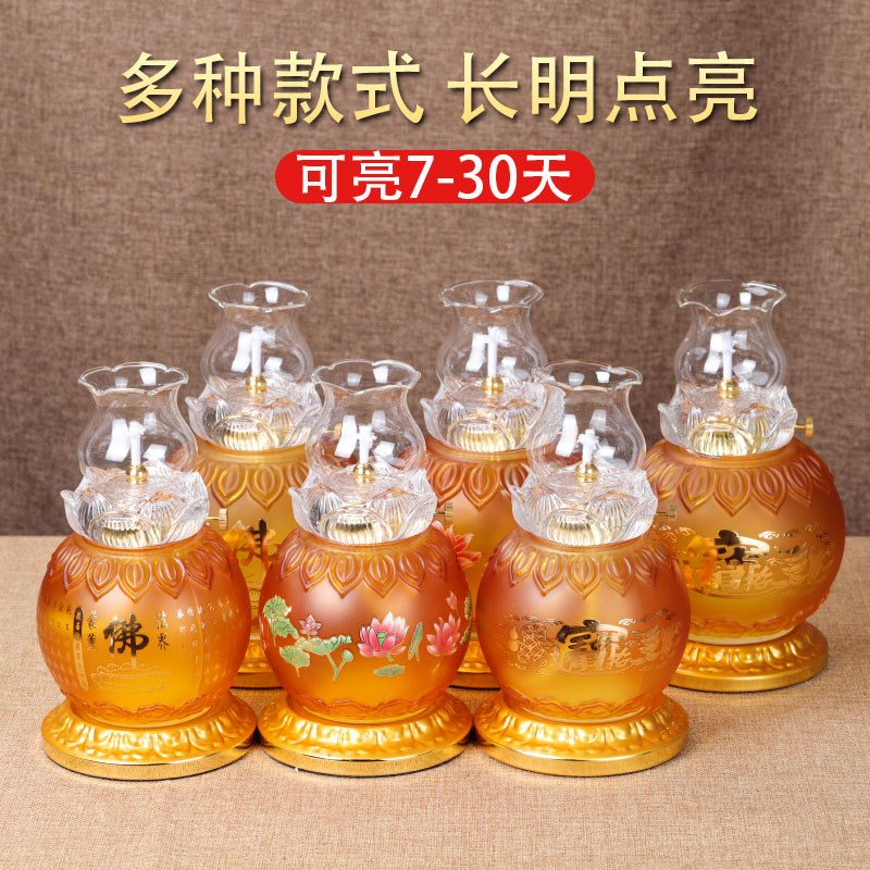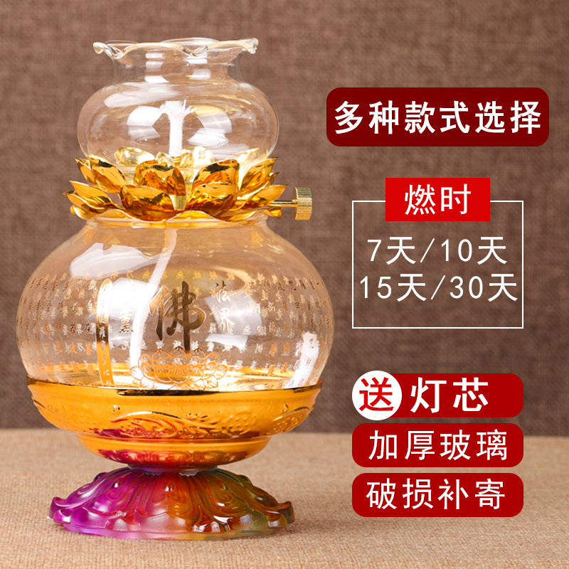 油灯家用供佛灯防风灯座液体酥油灯灯盏玻璃烛台灯架长明灯佛供灯