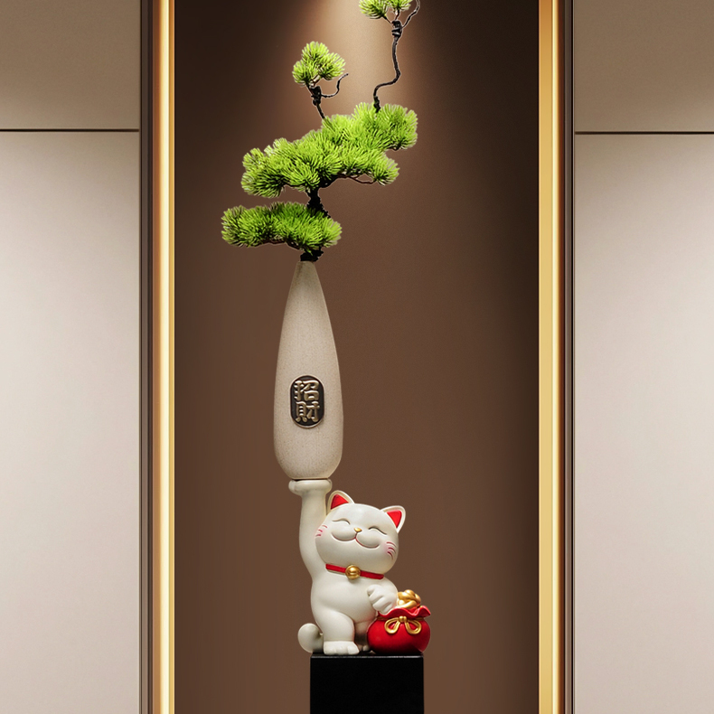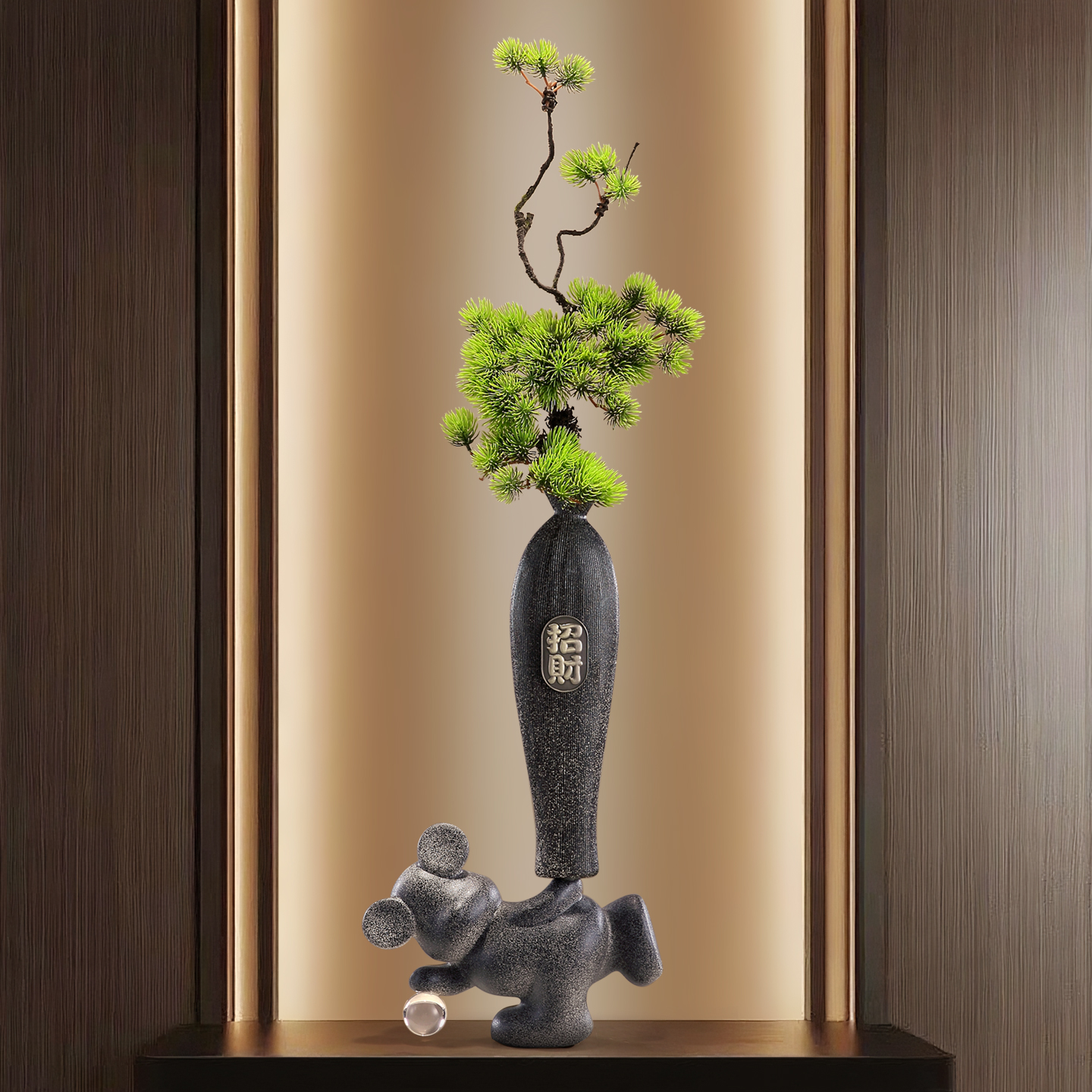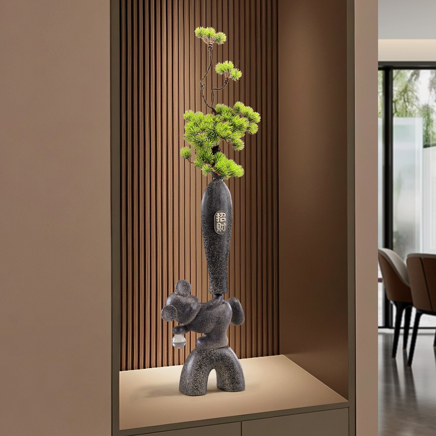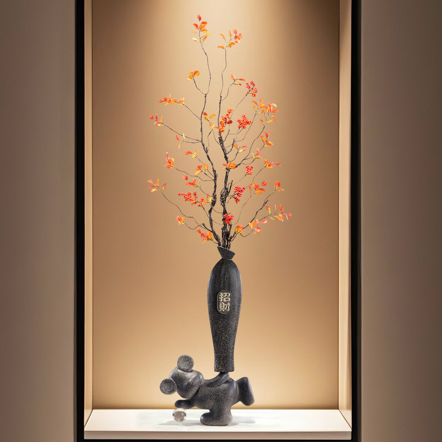 新中式入门玄关屏风创意熊花瓶摆件客厅壁龛竖长高档乔迁装饰品