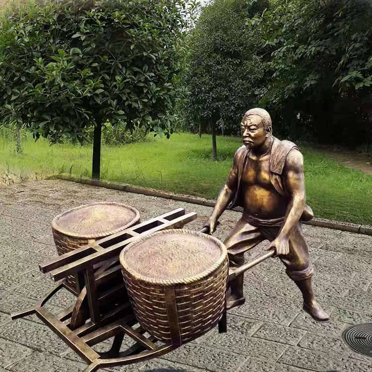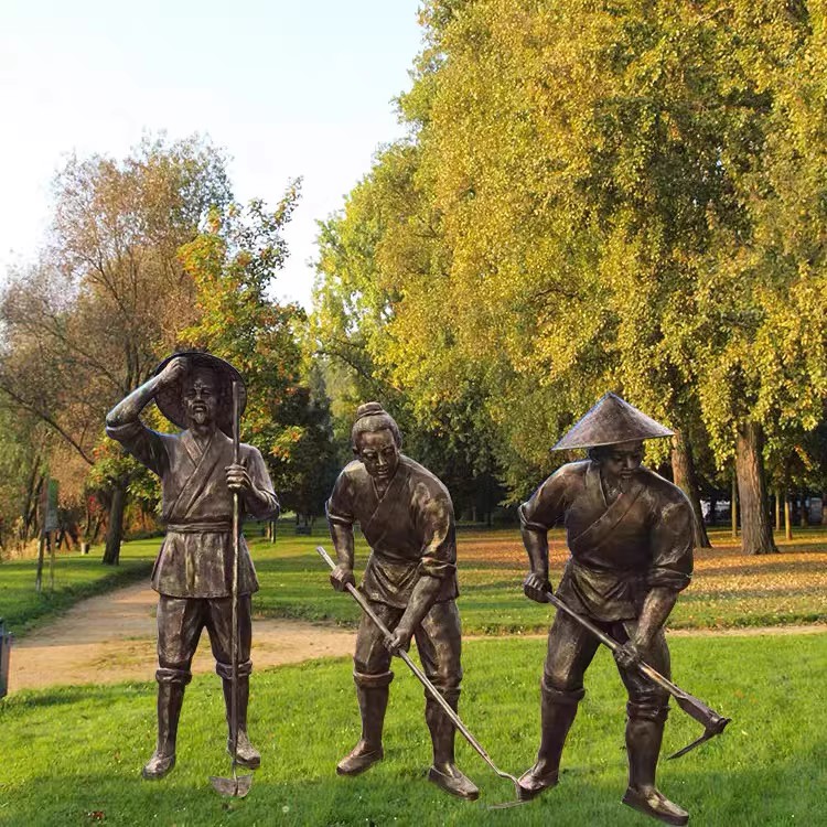 玻璃钢农耕人物雕塑文化牛拉犁民俗浮雕园林仿铜人物铸铜摆件定制