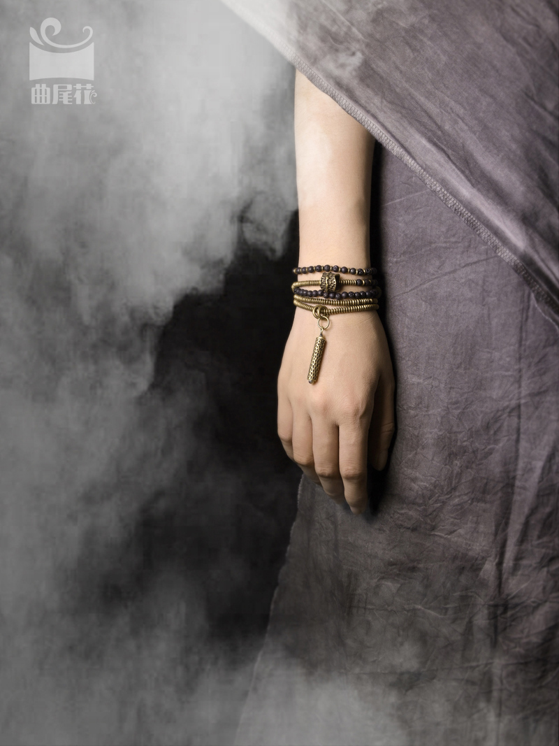 原创复古火山石多层手链男潮 个性铜珠串珠手串女潮酷百搭手饰品