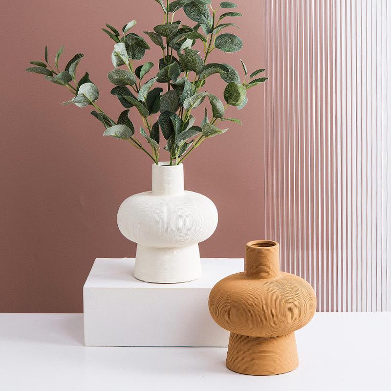 现代简约花器陶瓷花瓶摆件干花插花圆形白色客厅电视柜家居装饰品