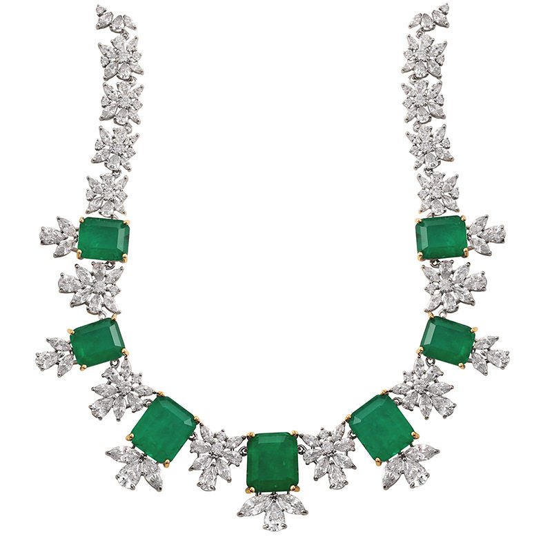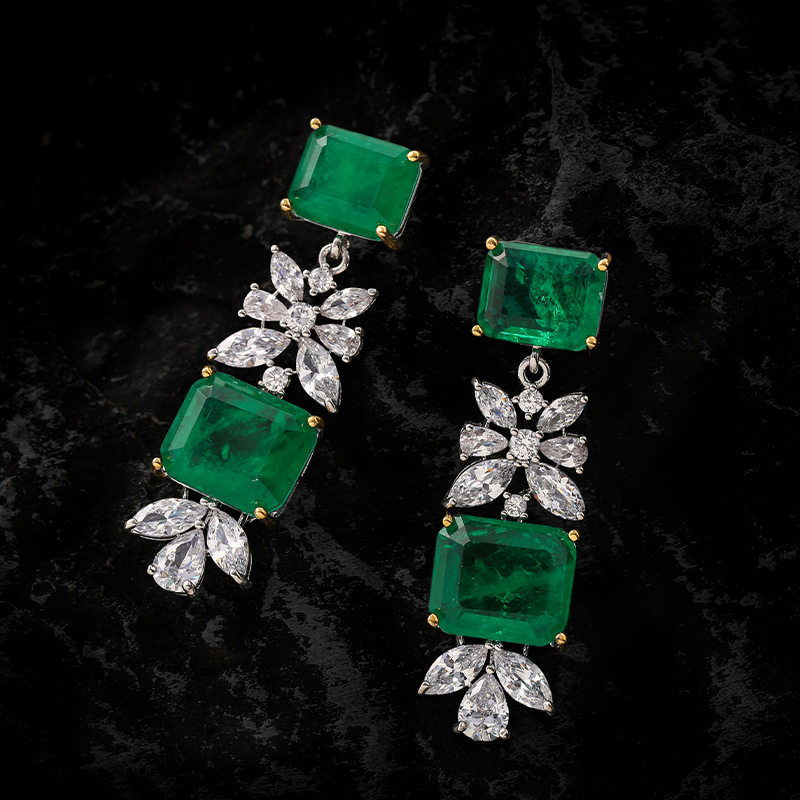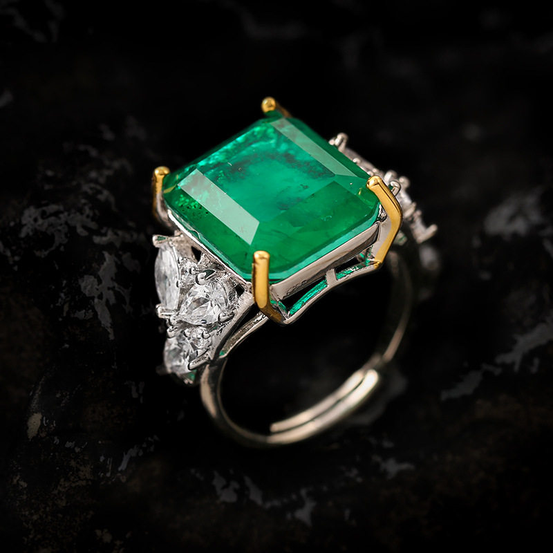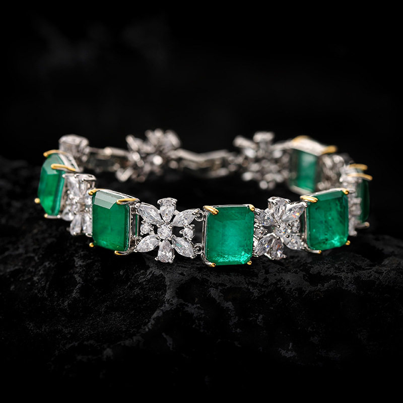 祖母绿方糖高级感项链戒指手链耳环四件套装复古时尚气质网红挂件