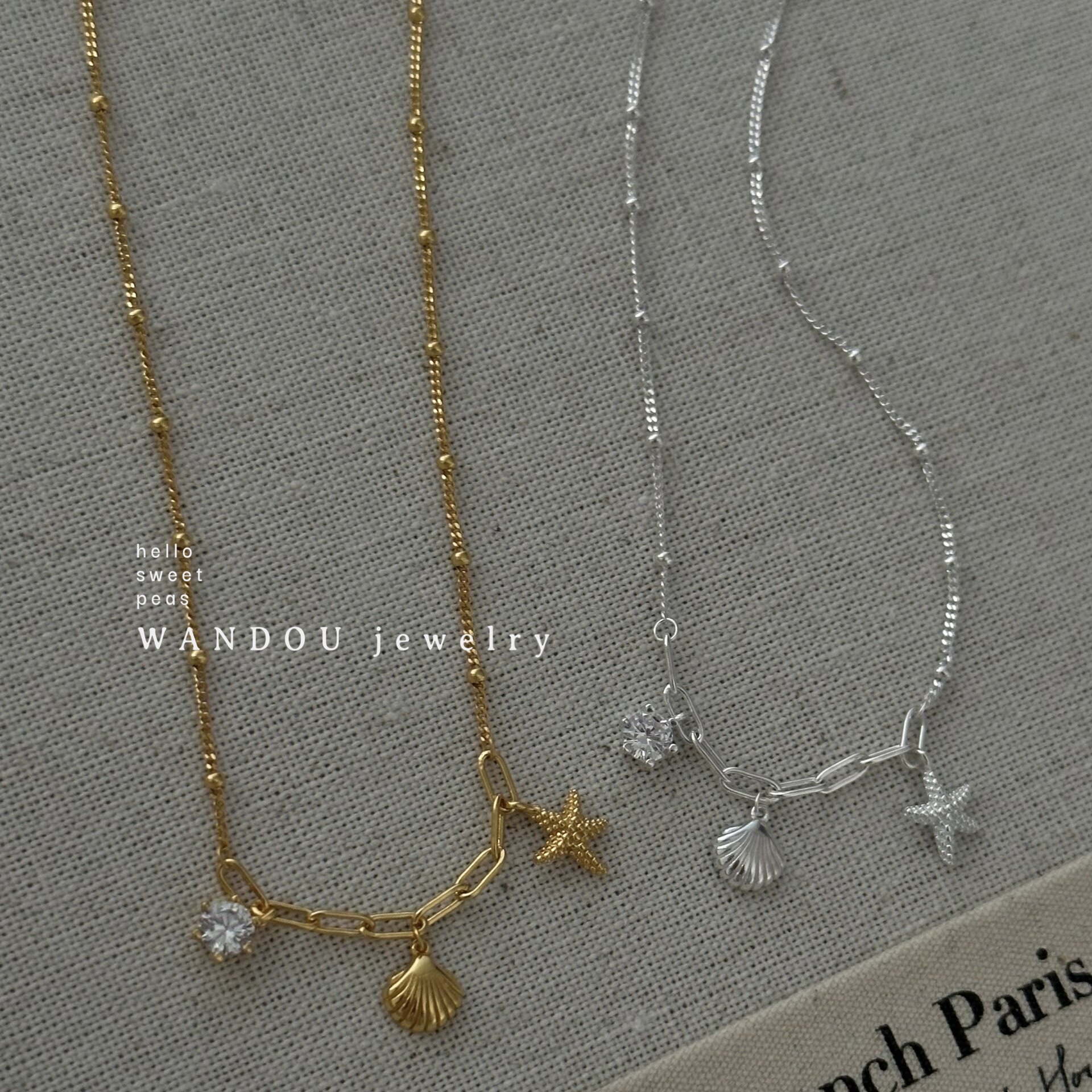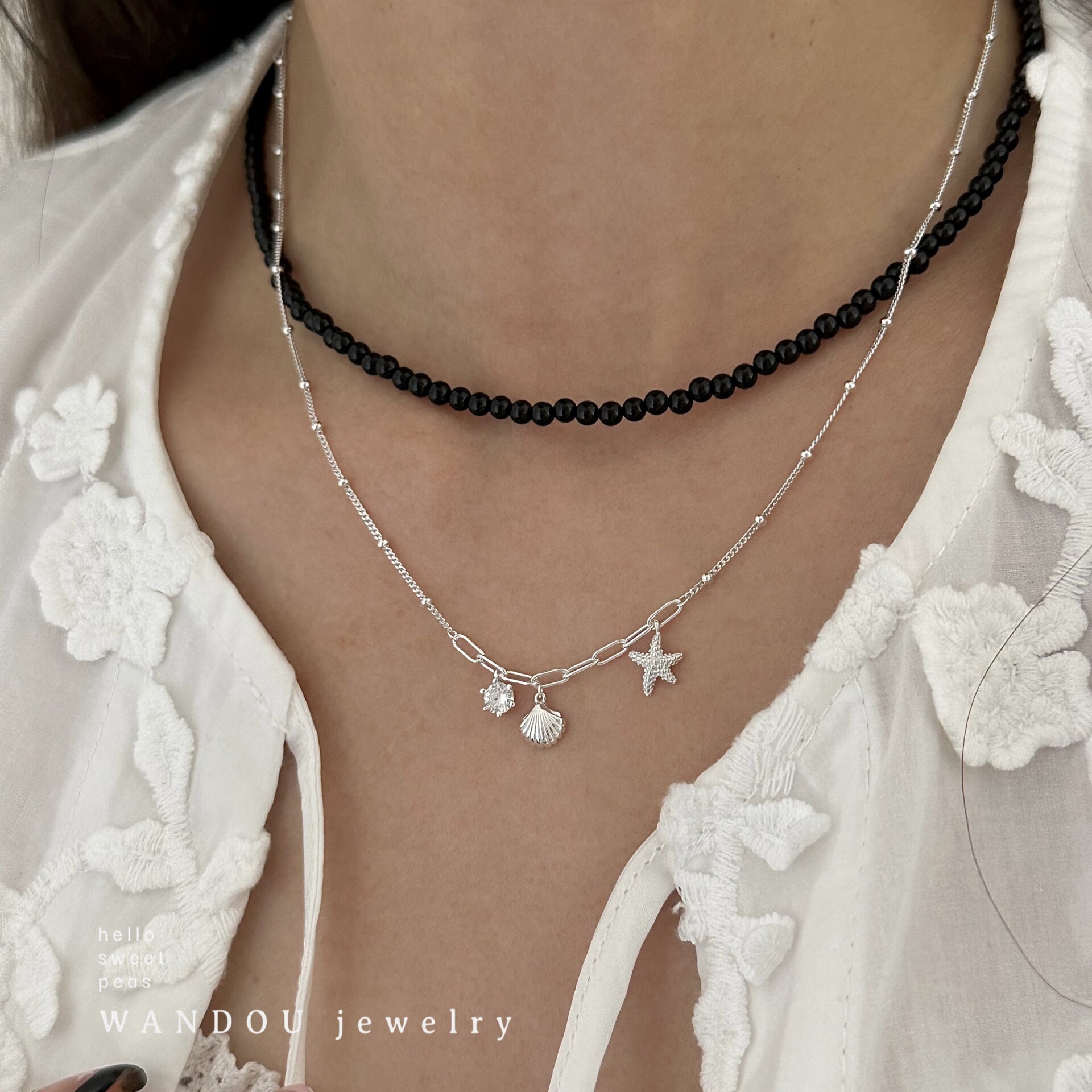 WANDOU◆925纯银海岛风海星贝壳吊坠项链女小众设计度假风锁骨链
