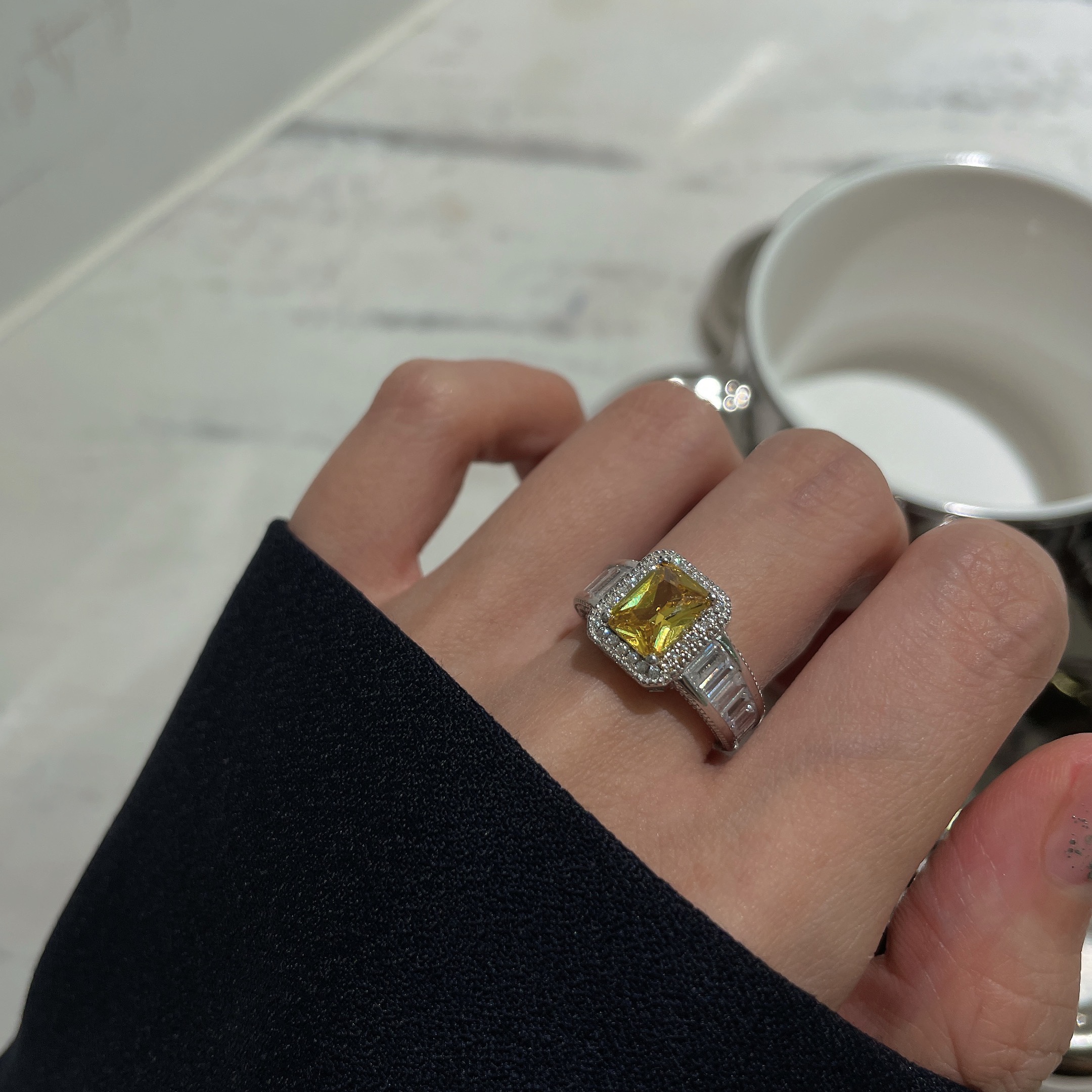 JollyMolly小众设计925银甜美礼物生日百搭个性重工排钻黄气球戒