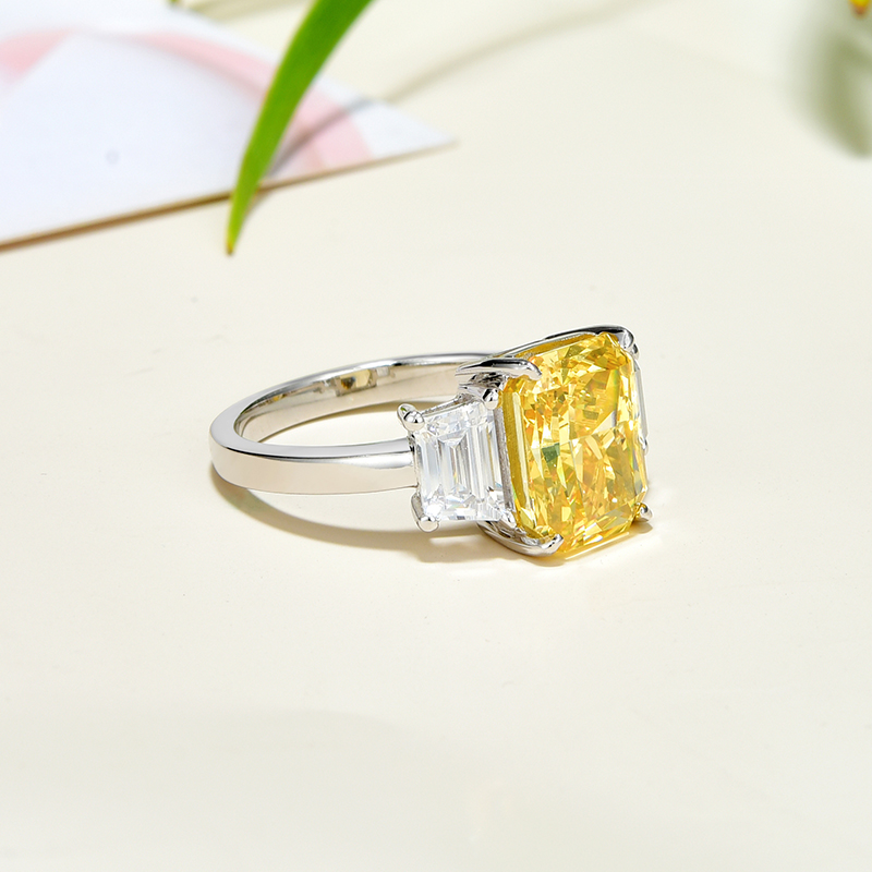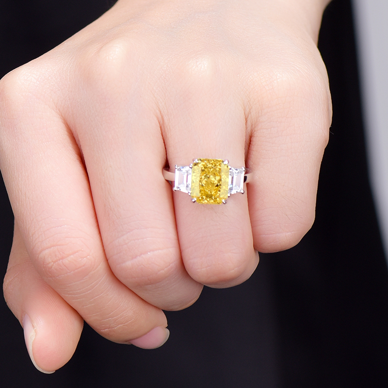 卓蝶珠宝超闪合成黄钻戒指纯银长方雷迪恩仿钻石女戒大气冰糖钻戒