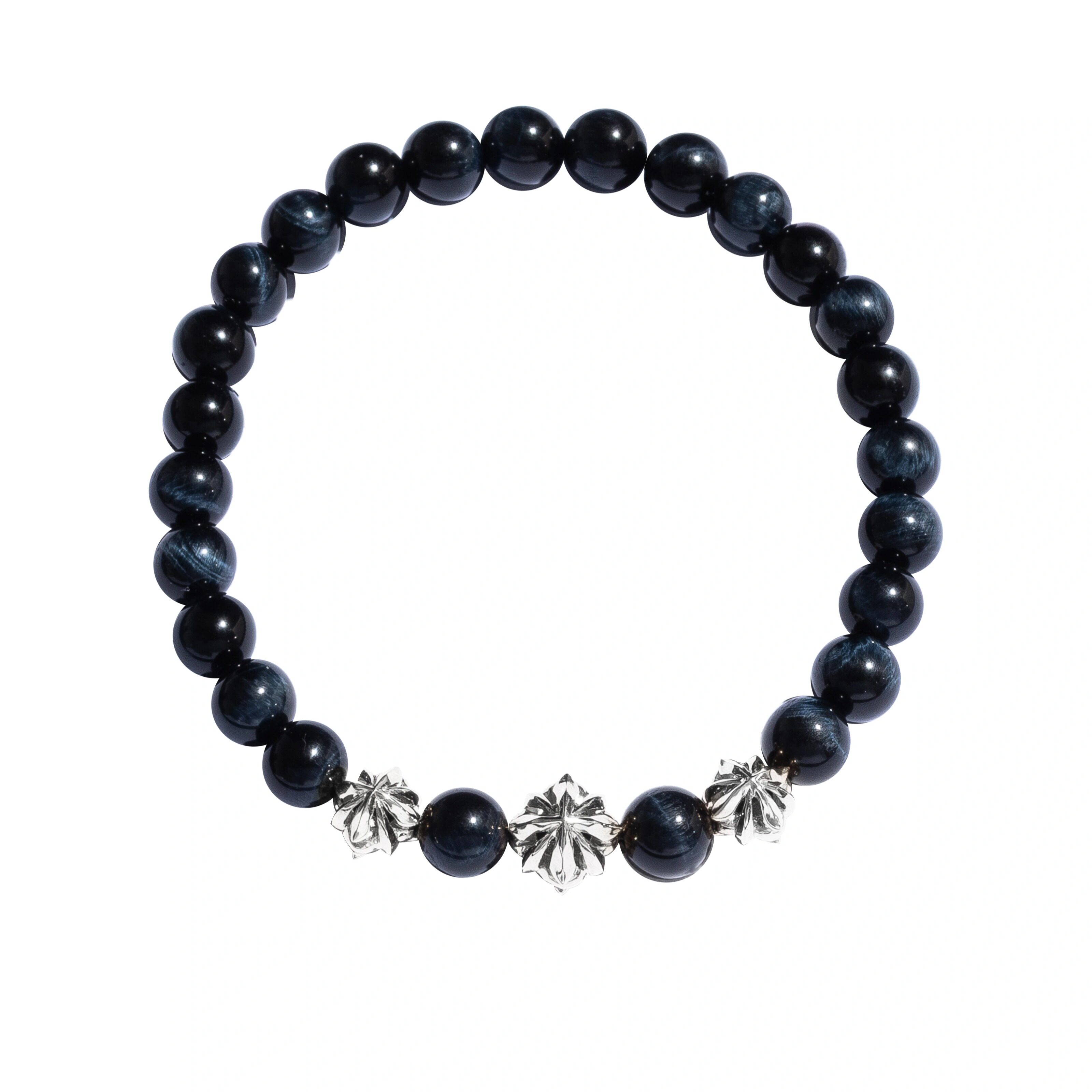 GOGOLLAM银饰 CROSS BALL BRACELET|鸢尾十字花球蓝色虎眼石手串