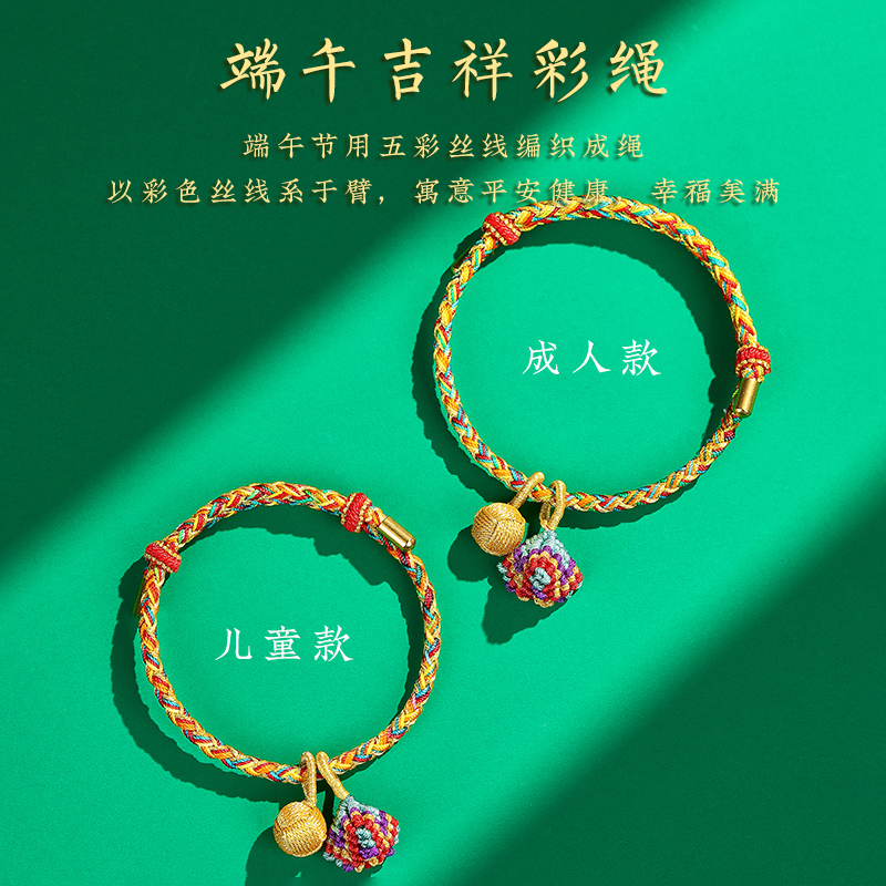 端午节五彩绳(蛟龙五彩)手绳新款手链儿童宝宝绣球小粽子五色线