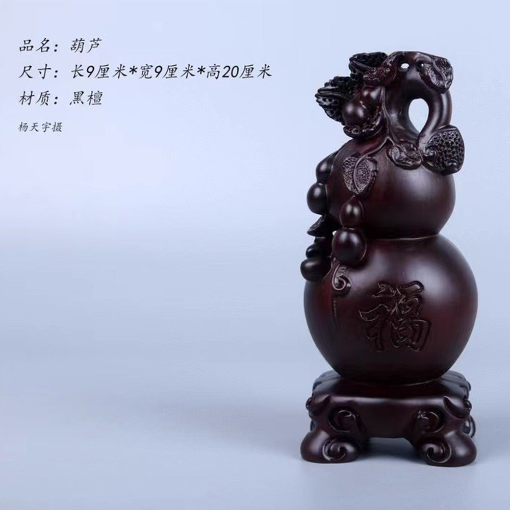 【雕如意】黑檀实木福禄葫芦摆件家居客厅办公室装饰送礼