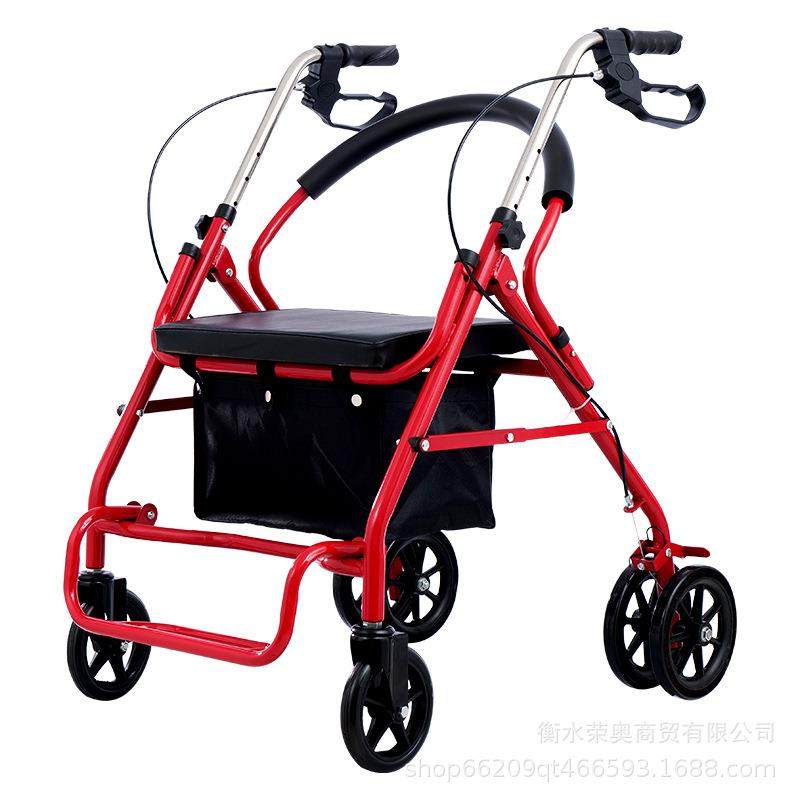 手推车四轮买菜车可推可坐可折叠购物车便携家用老年代步车助行器