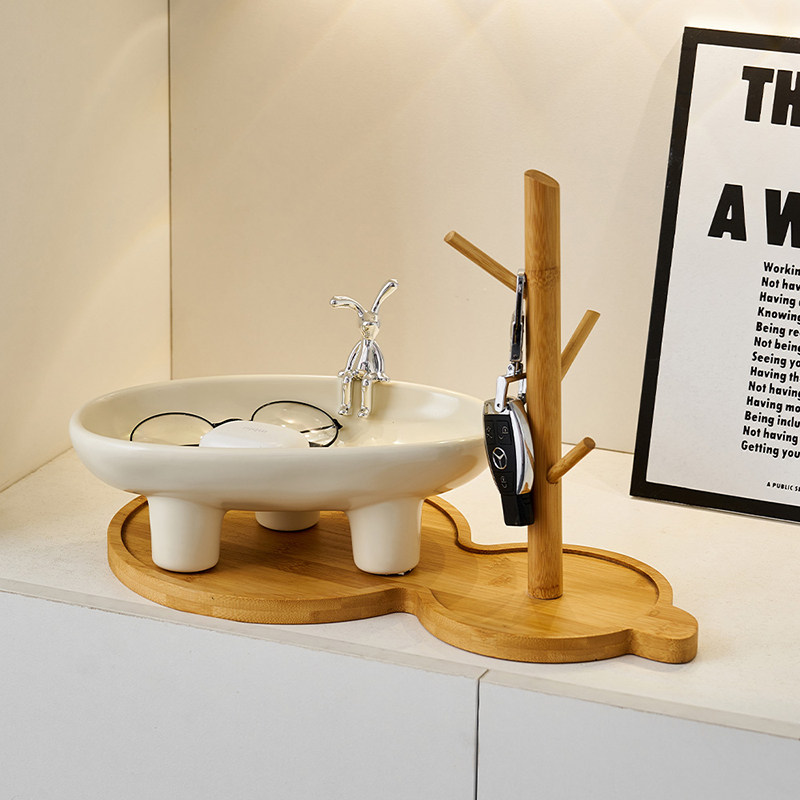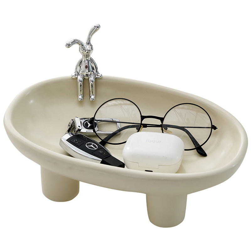 奶油风托盘简约桌面首饰装饰品玄关入户进门钥匙收纳摆件置物架小