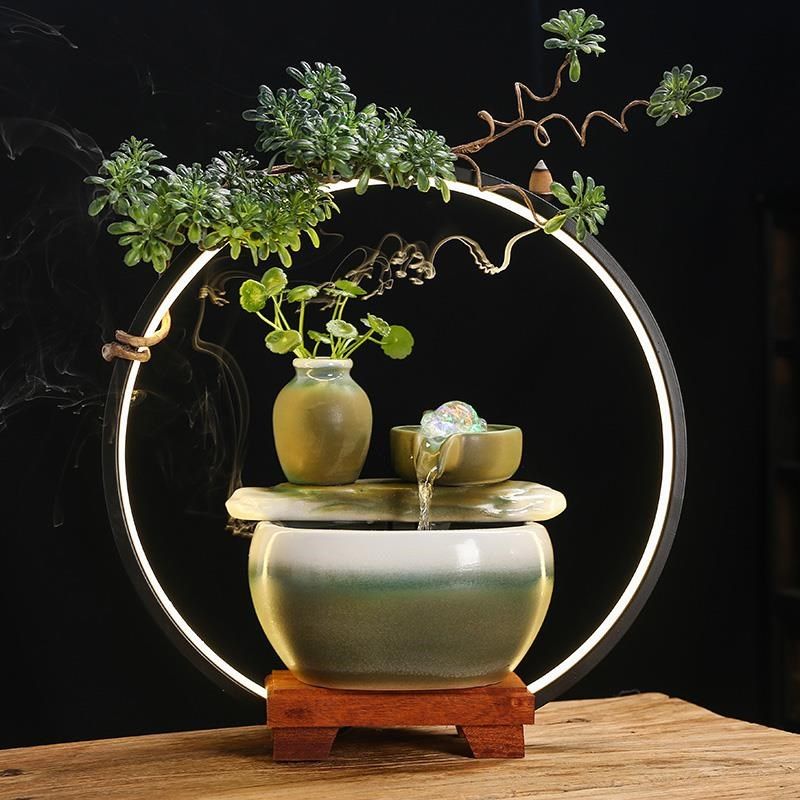 礼品转运摆件陶瓷办公室简约鱼缸喷泉循环水流水客厅小型桌面招财