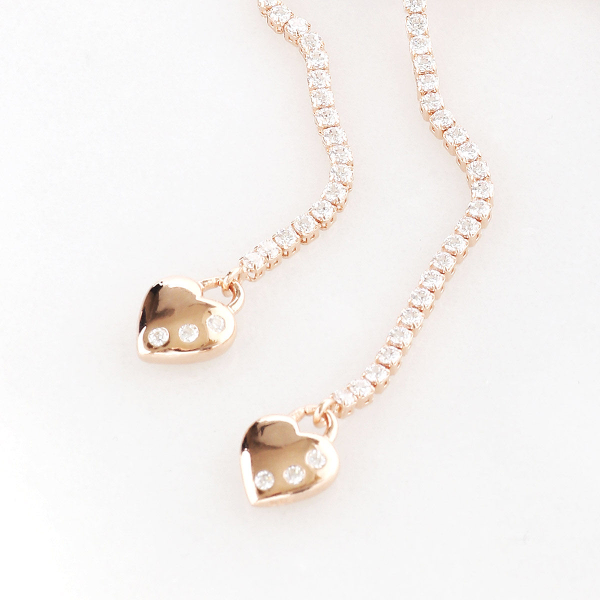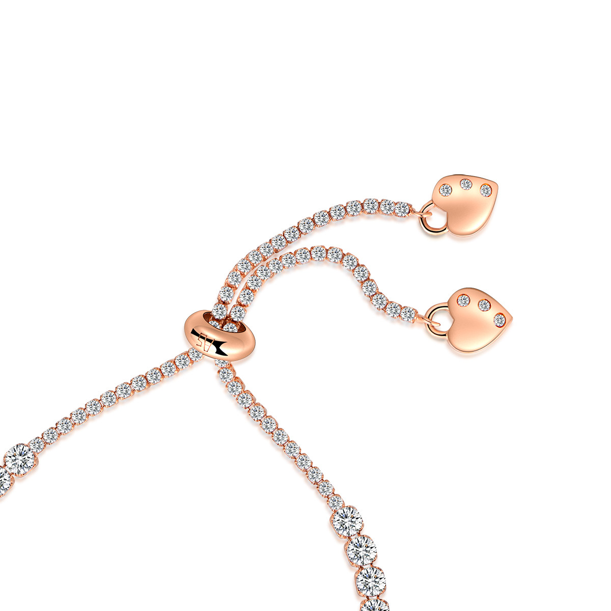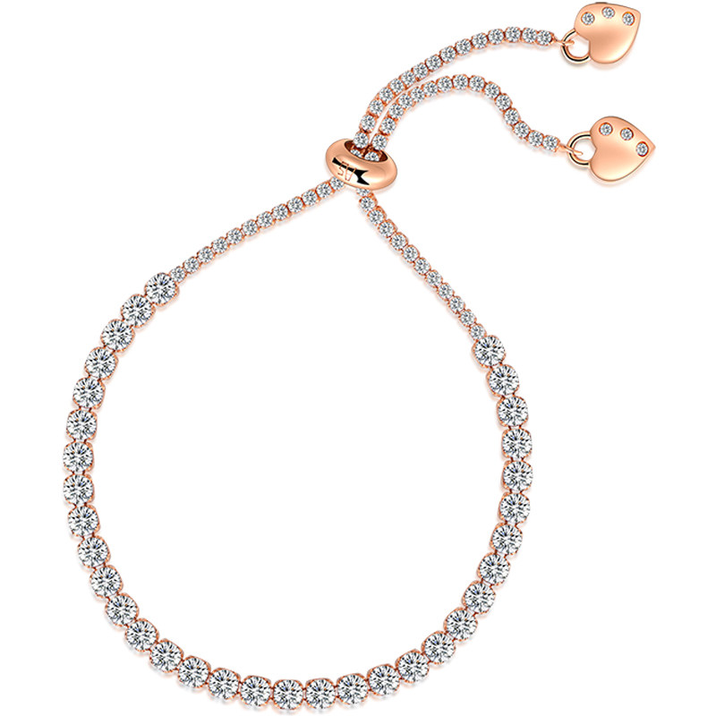 心心相印闪耀锆石镶嵌满钻手链女纯银爱心尾链送女朋友纪念礼物
