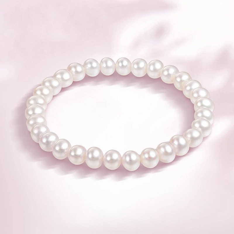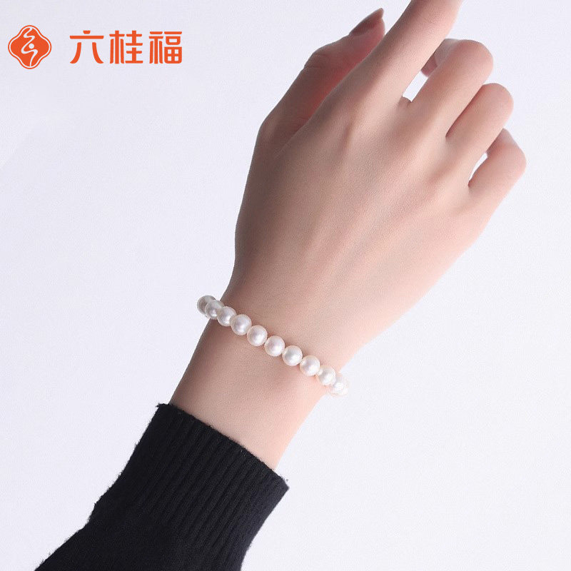 六桂福珠宝珍珠手链女款天然正品串珠手饰弹力绳圣诞礼物