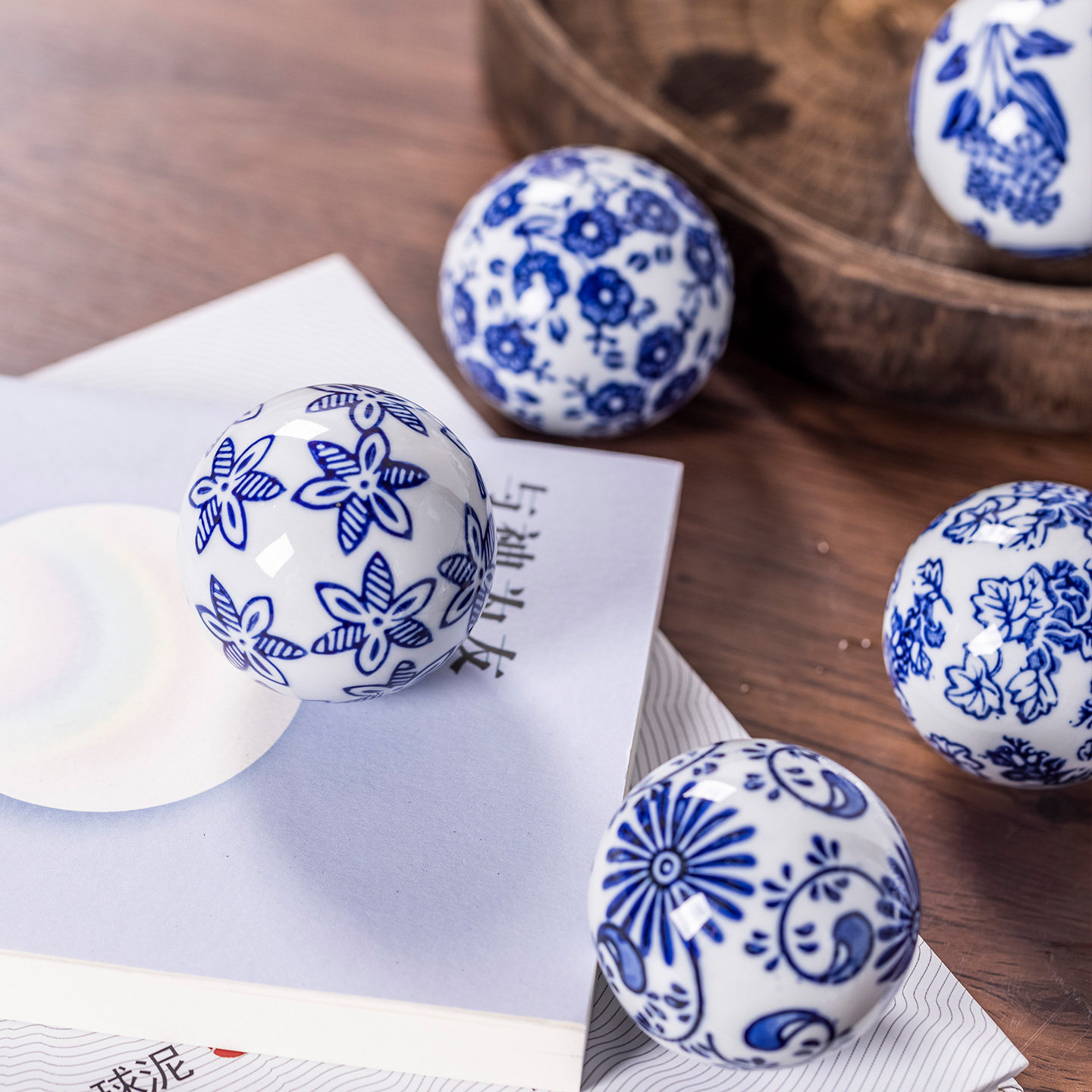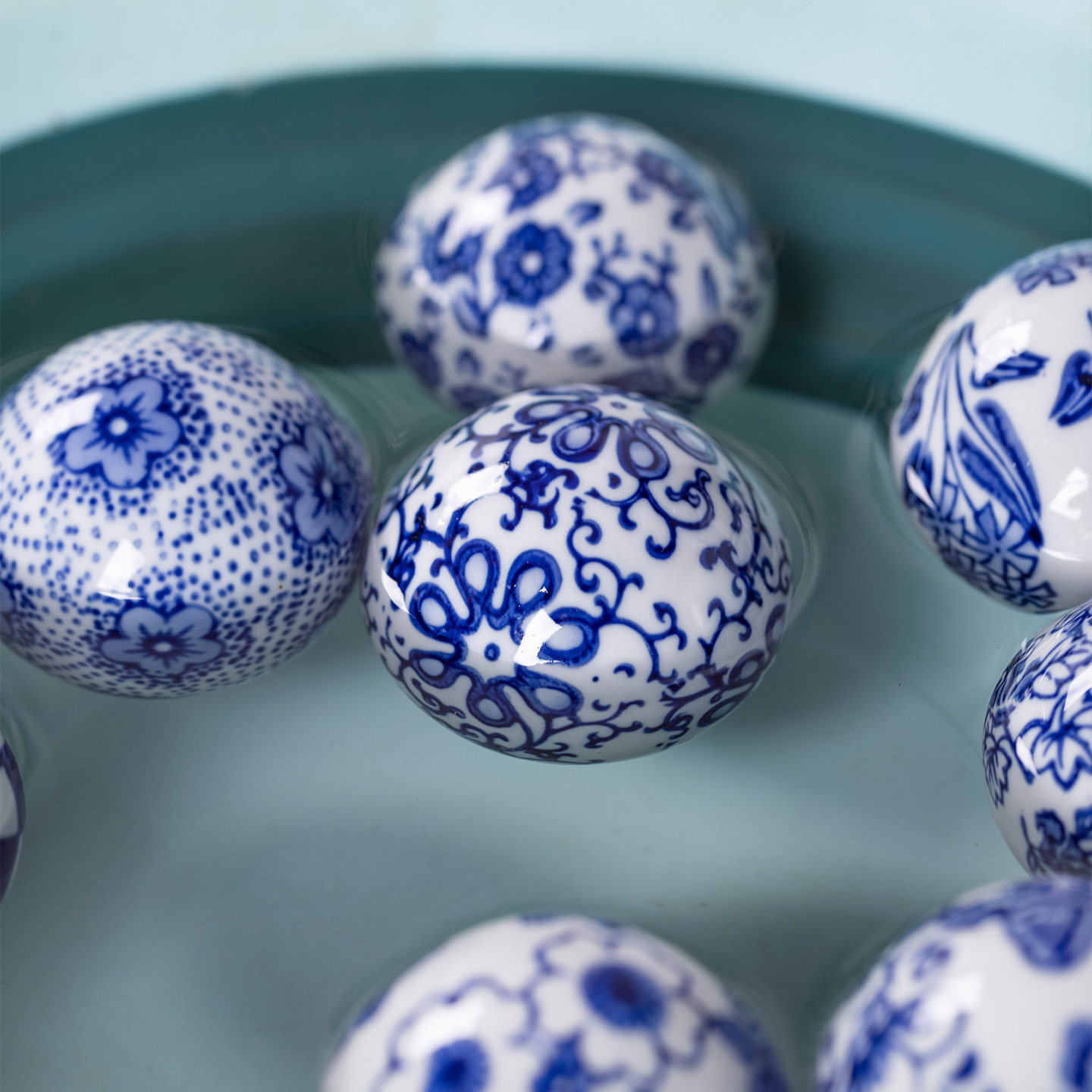 青花瓷手绘水中漂浮球鱼缸摆设圣诞球陶瓷装饰陶瓷球摆件 6厘米