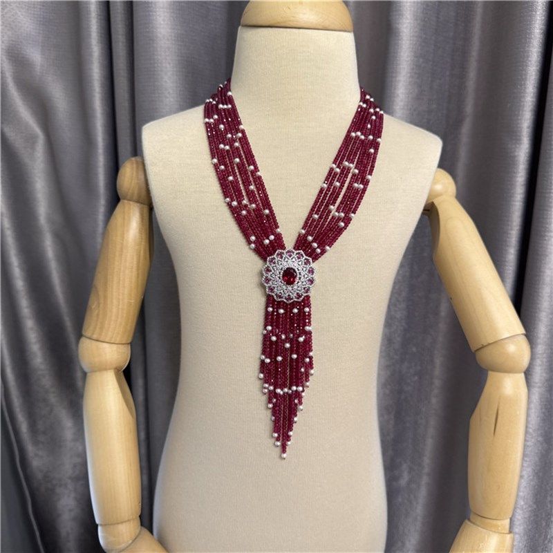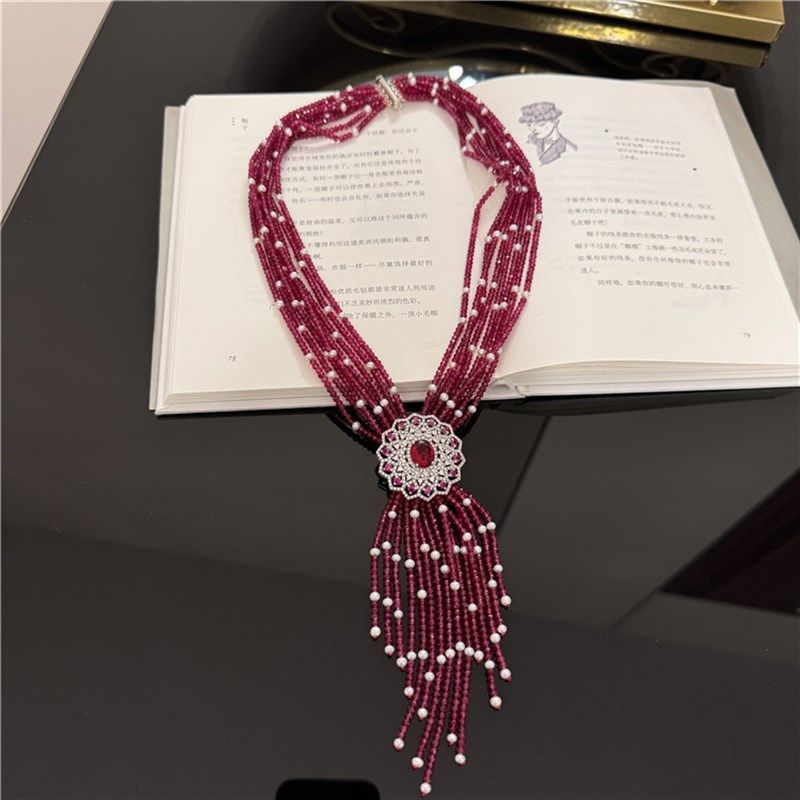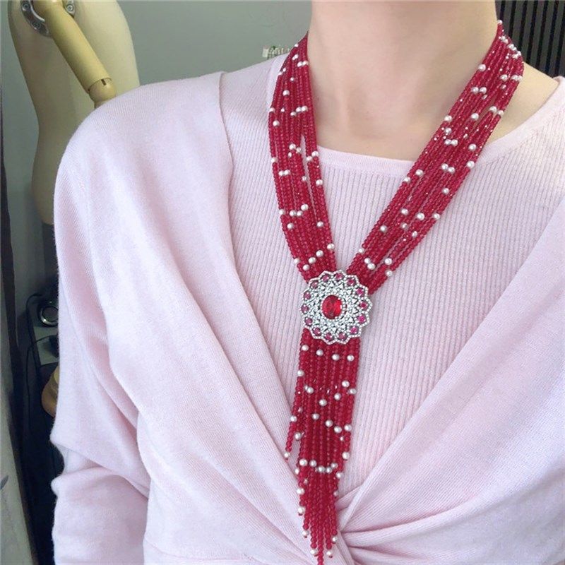 玫红多层项链女款小众设计高级感轻奢豪华毛衣链颈链配饰送女友
