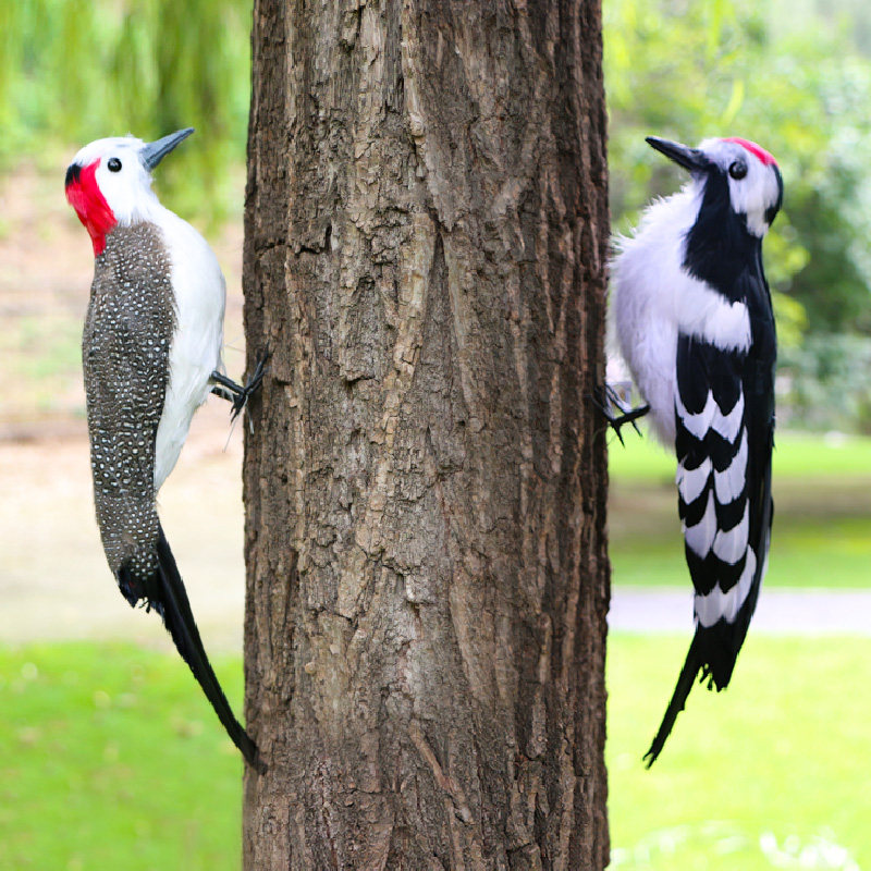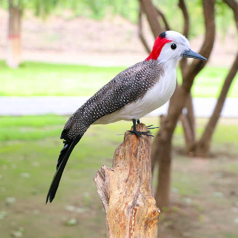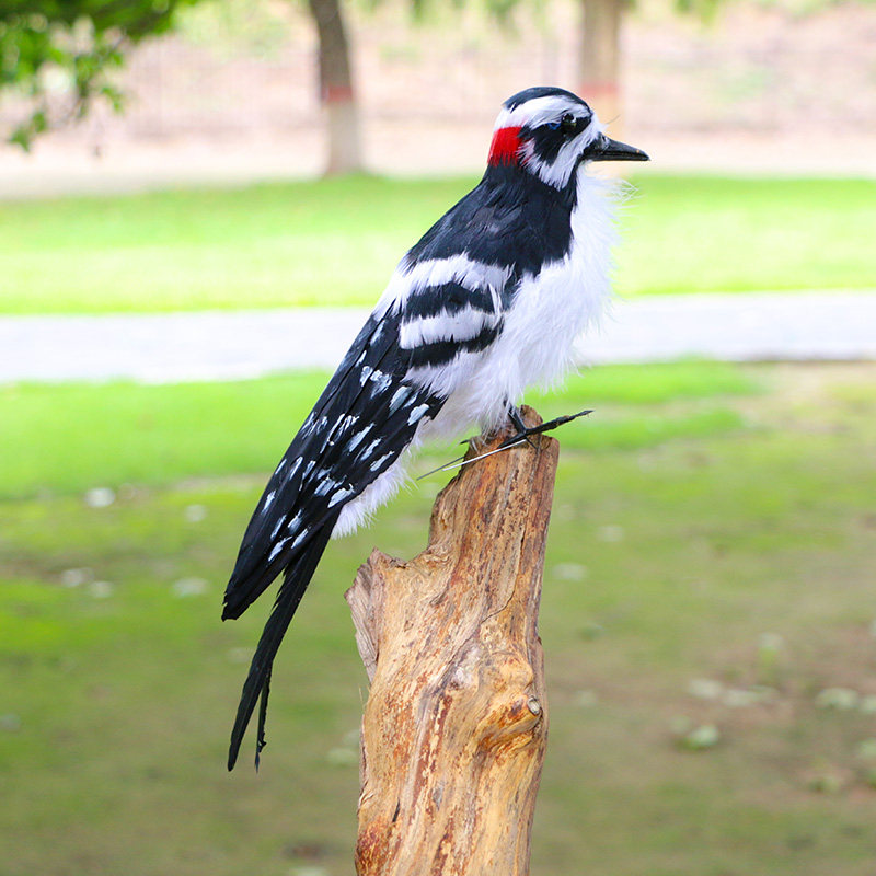 新品仿真啄木鸟模型工艺品真羽毛园林小鸟装饰教学漫展摄影道具