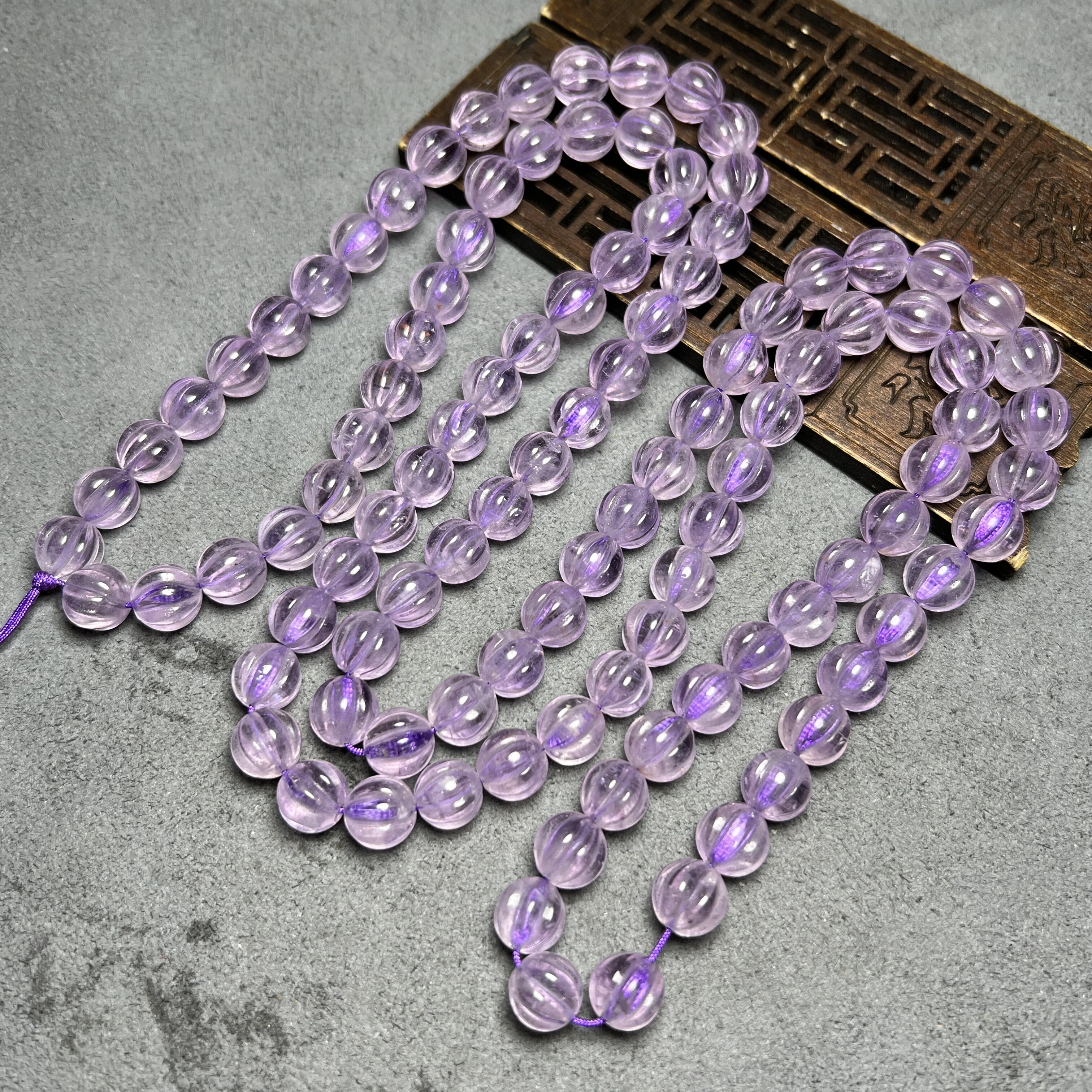 尼泊尔喜马拉雅老紫水晶佛珠项链老紫水晶瓜珠108颗链珠水晶饰品
