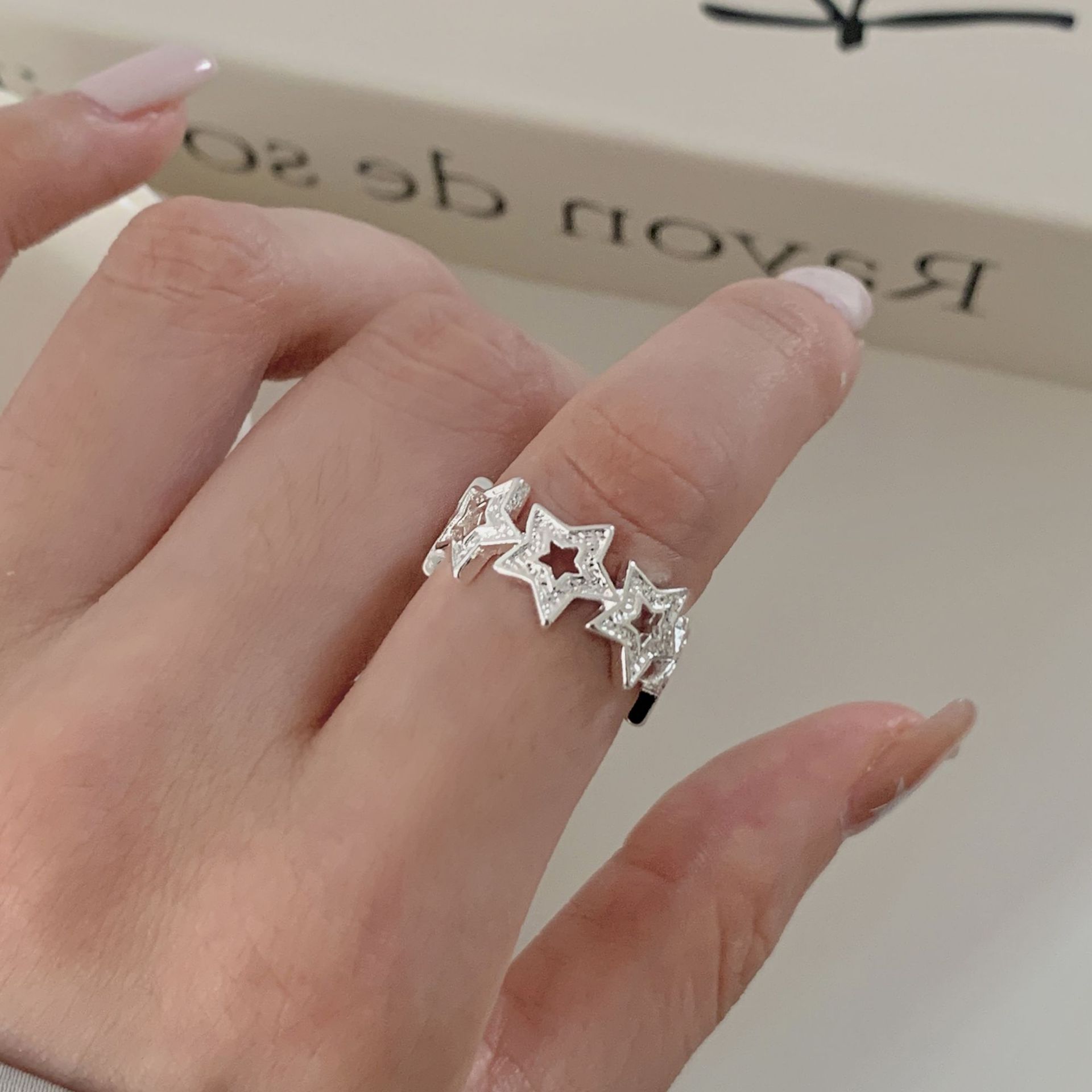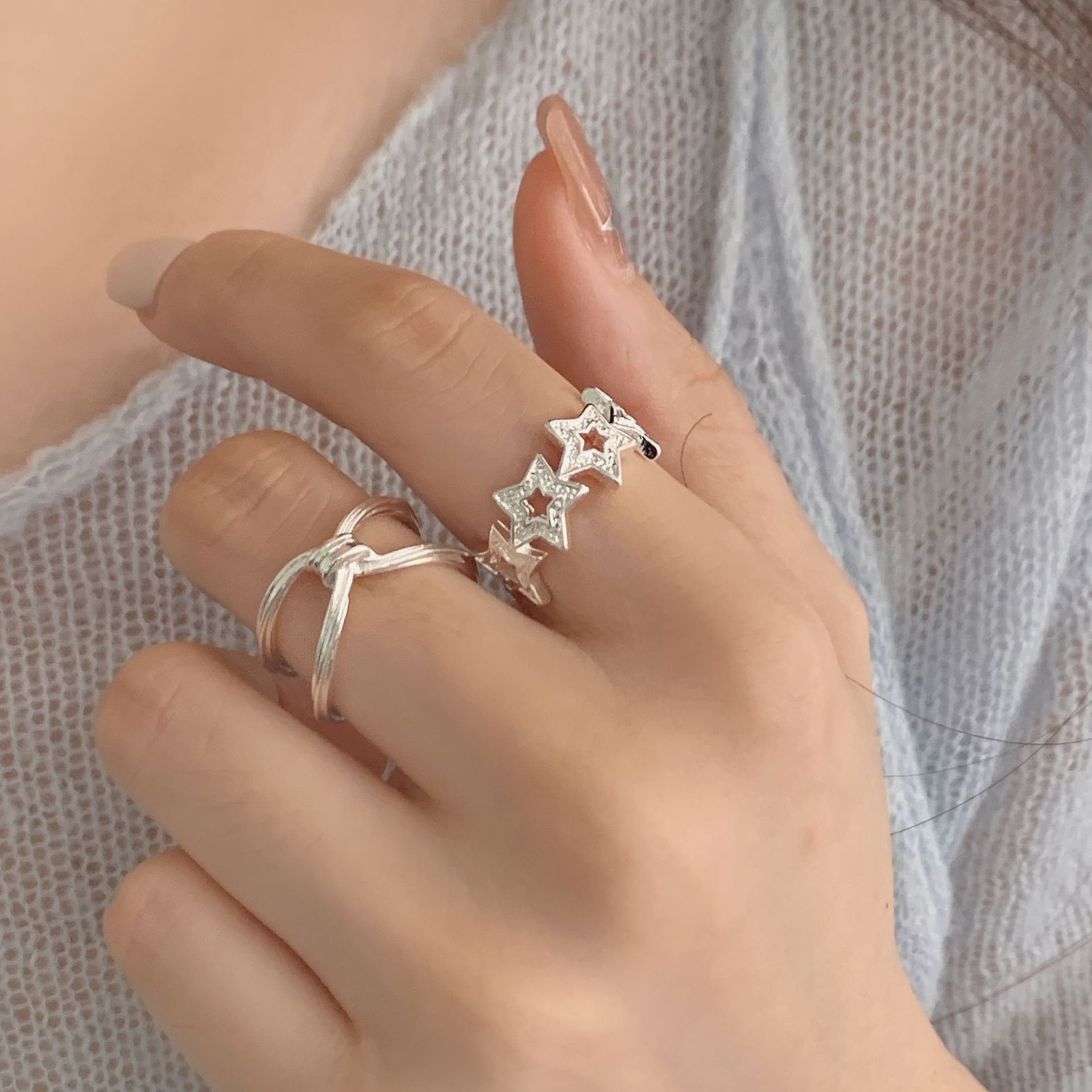 甜美镂空星星戒指女简约线条交叉冷淡风百搭开口指环叠戴食指戒潮