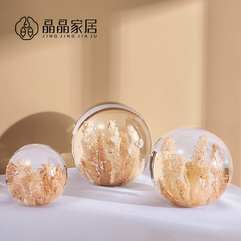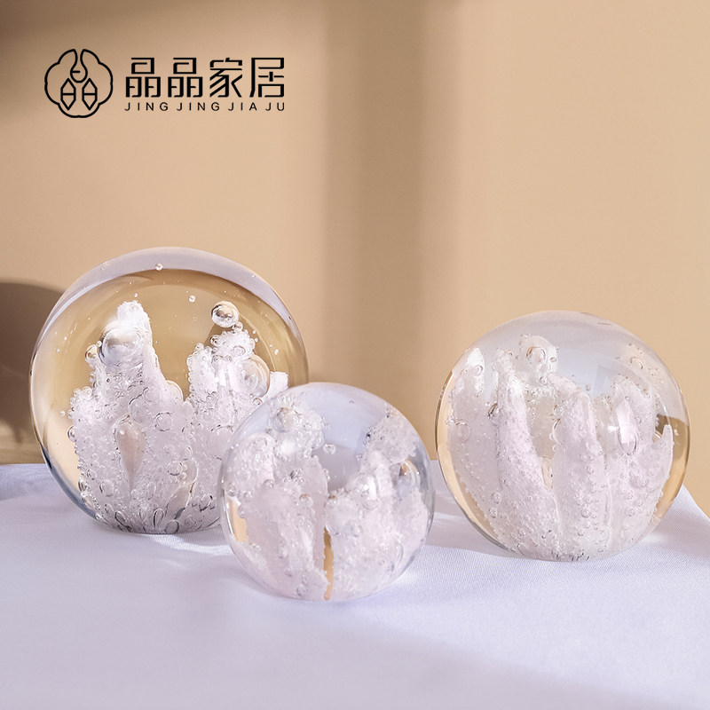 优选现代轻奢透明水晶圆球珊瑚玻璃摆件客餐厅设计师玄关电视柜展