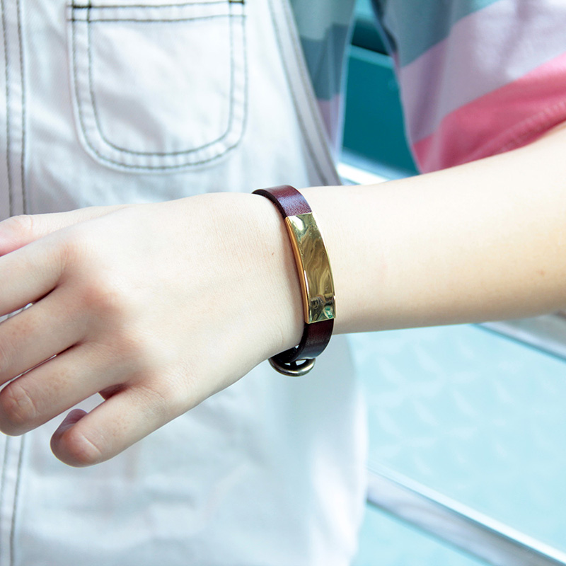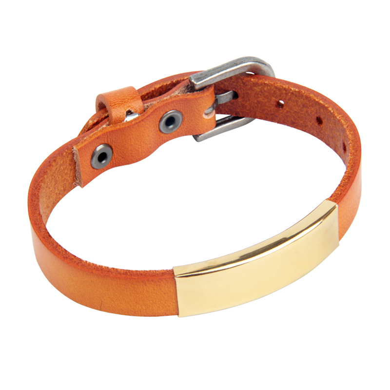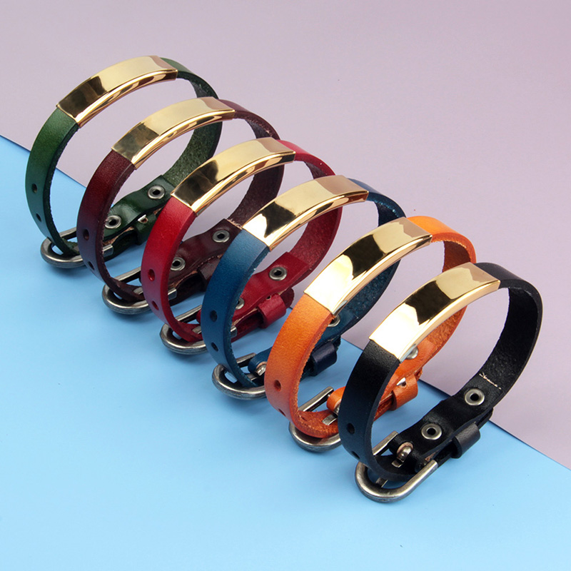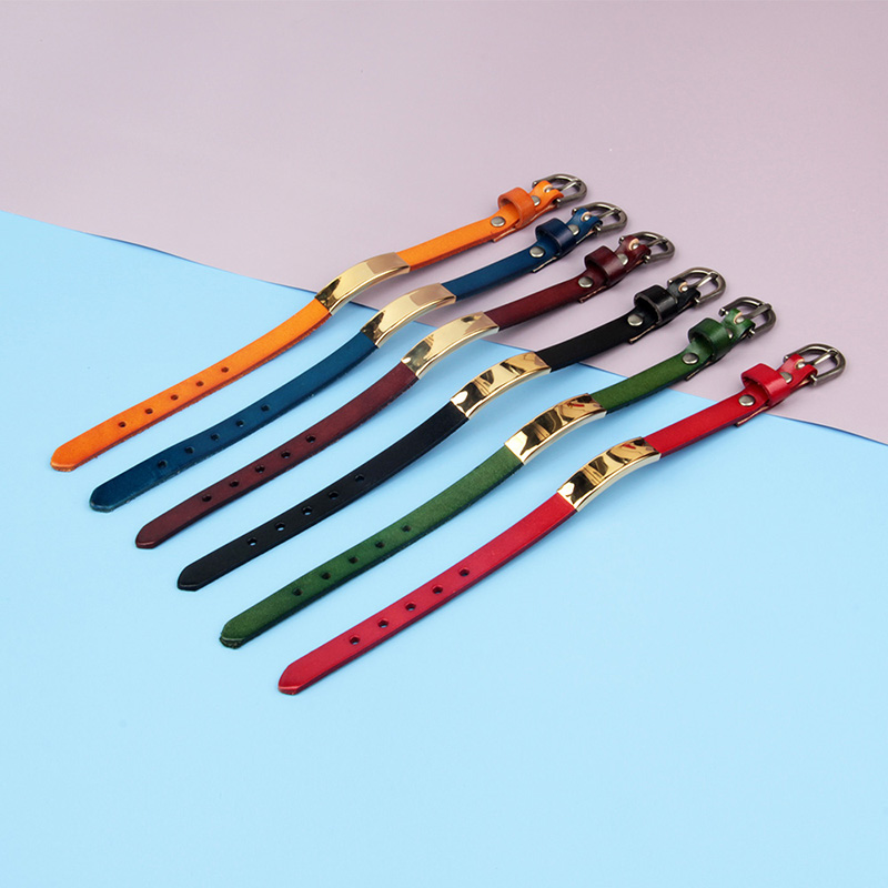 日韩时尚手链清新文艺范金色钛钢牛皮手环日常搭配简约手饰