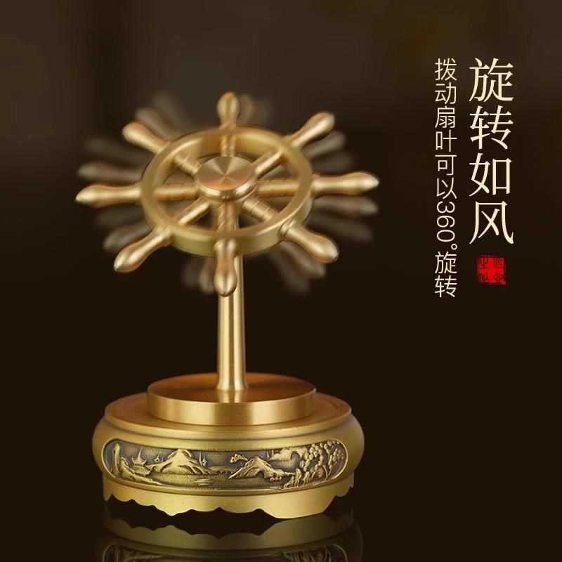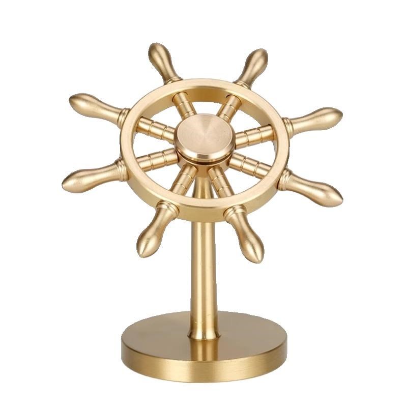 黄铜领航舵一帆风顺创意帆铜船舵方向盘转转桌面摆件解压神器送礼