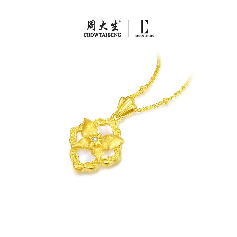 周大生*DC灵动仙蝶项链女纯银925贝壳设计感蝴蝶锁骨链生日礼物
