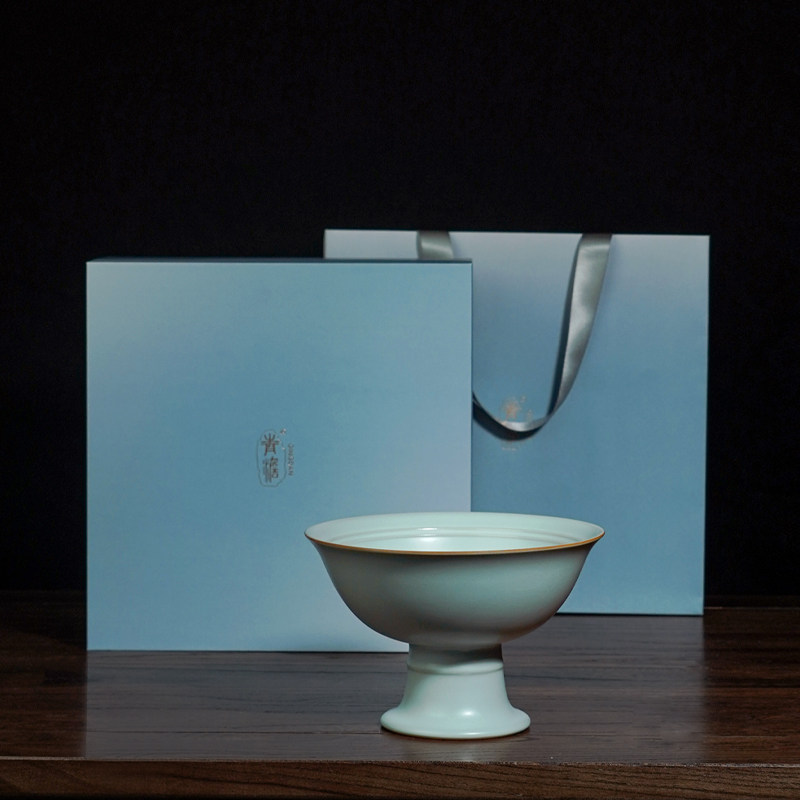 汝窑果盘陶瓷大号高脚家用客厅茶几景德镇复古仿宋代汝瓷青瓷礼品