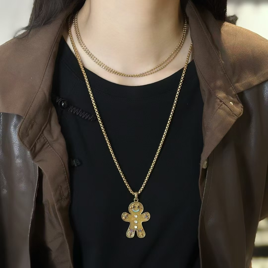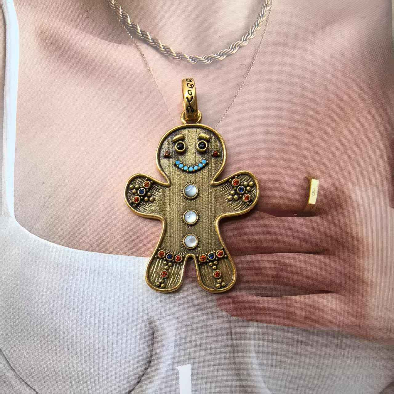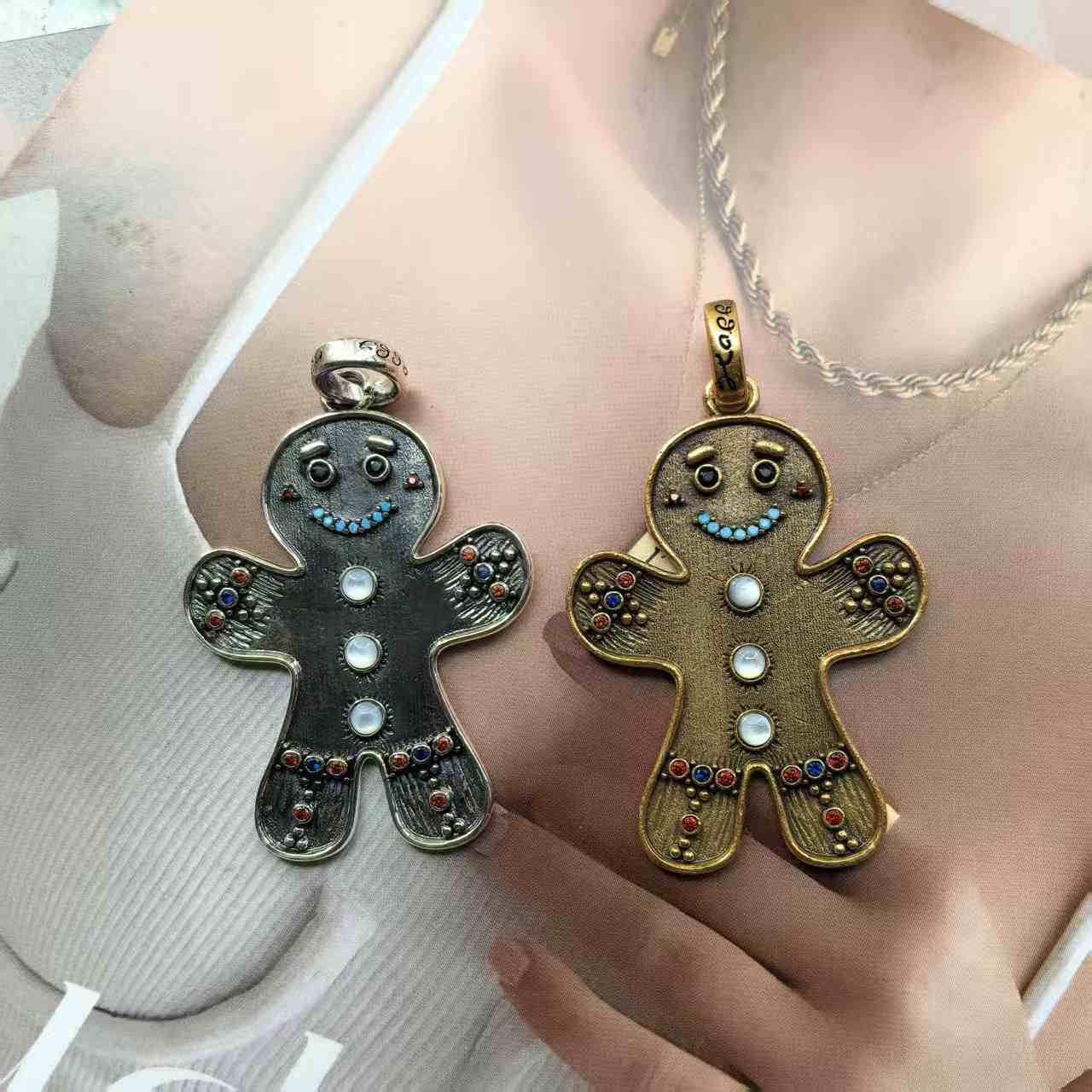吊坠925银 A010姜饼人吊坠大号INS风东大门原创设计师小众