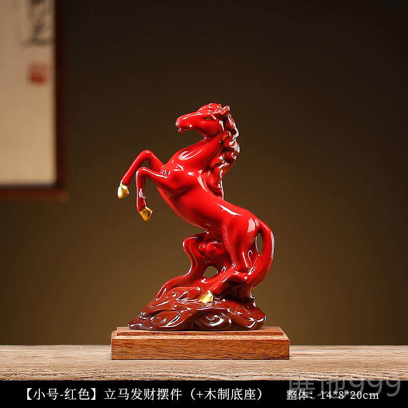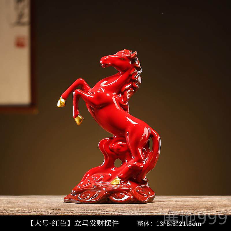高档瓷红色摆件生肖马马工艺品到成马功陶发财家居玄关办公室装饰