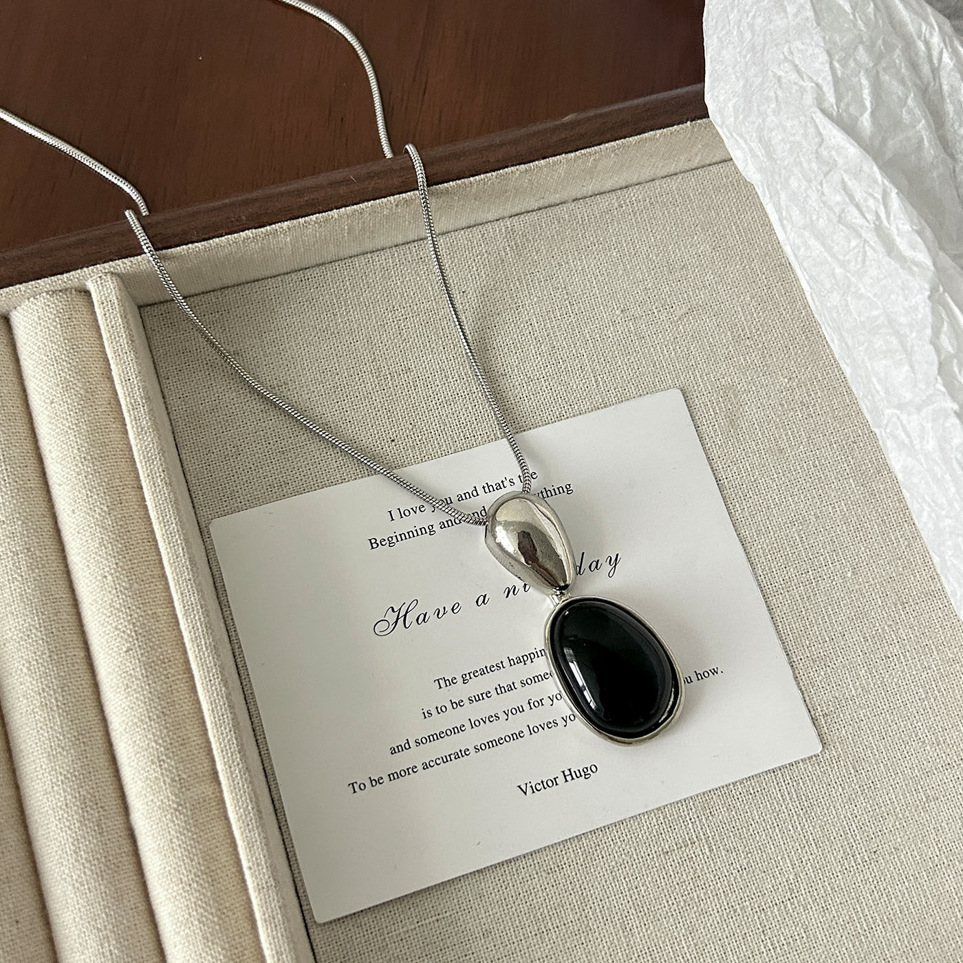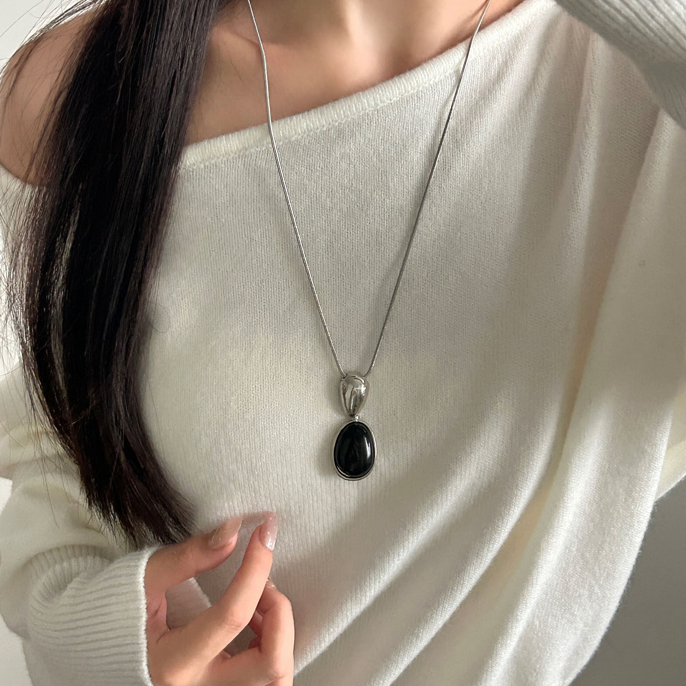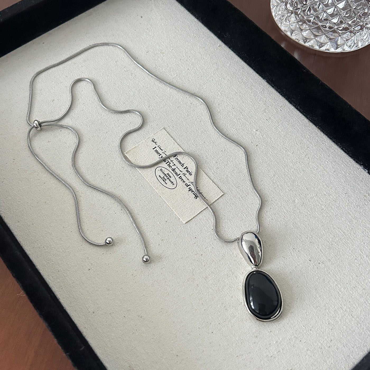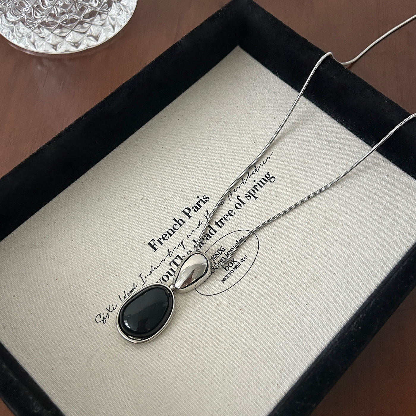黑色水滴吊坠不掉色长款项链女2025新款高级感秋冬长款毛衣链配饰