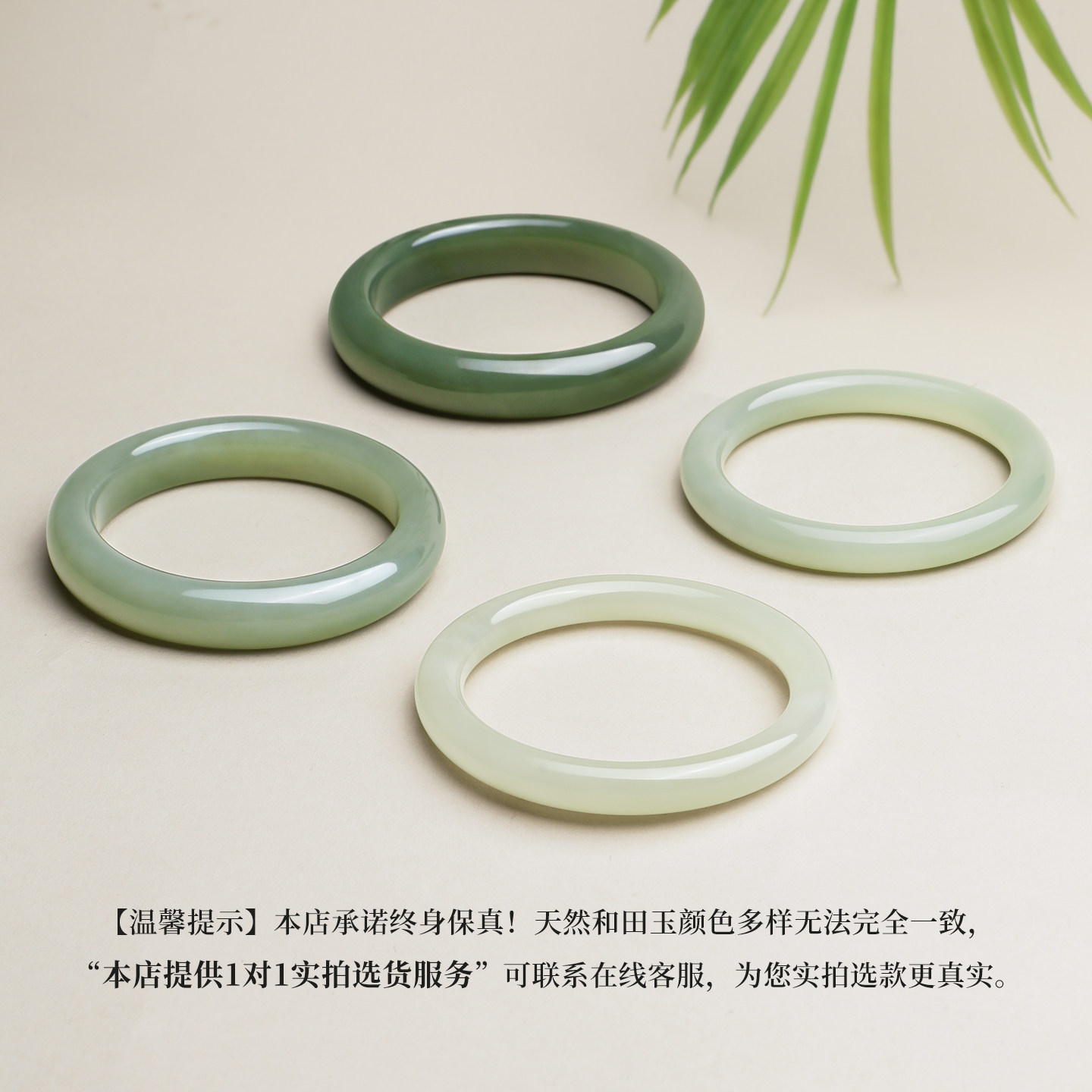五花八门浅青和田玉手镯天然青海料高冰晴水女款玉镯子平安镯真品