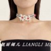 时髦辣妹风灰色珍珠花朵双层choker项链女小众高级感甜美短锁骨链