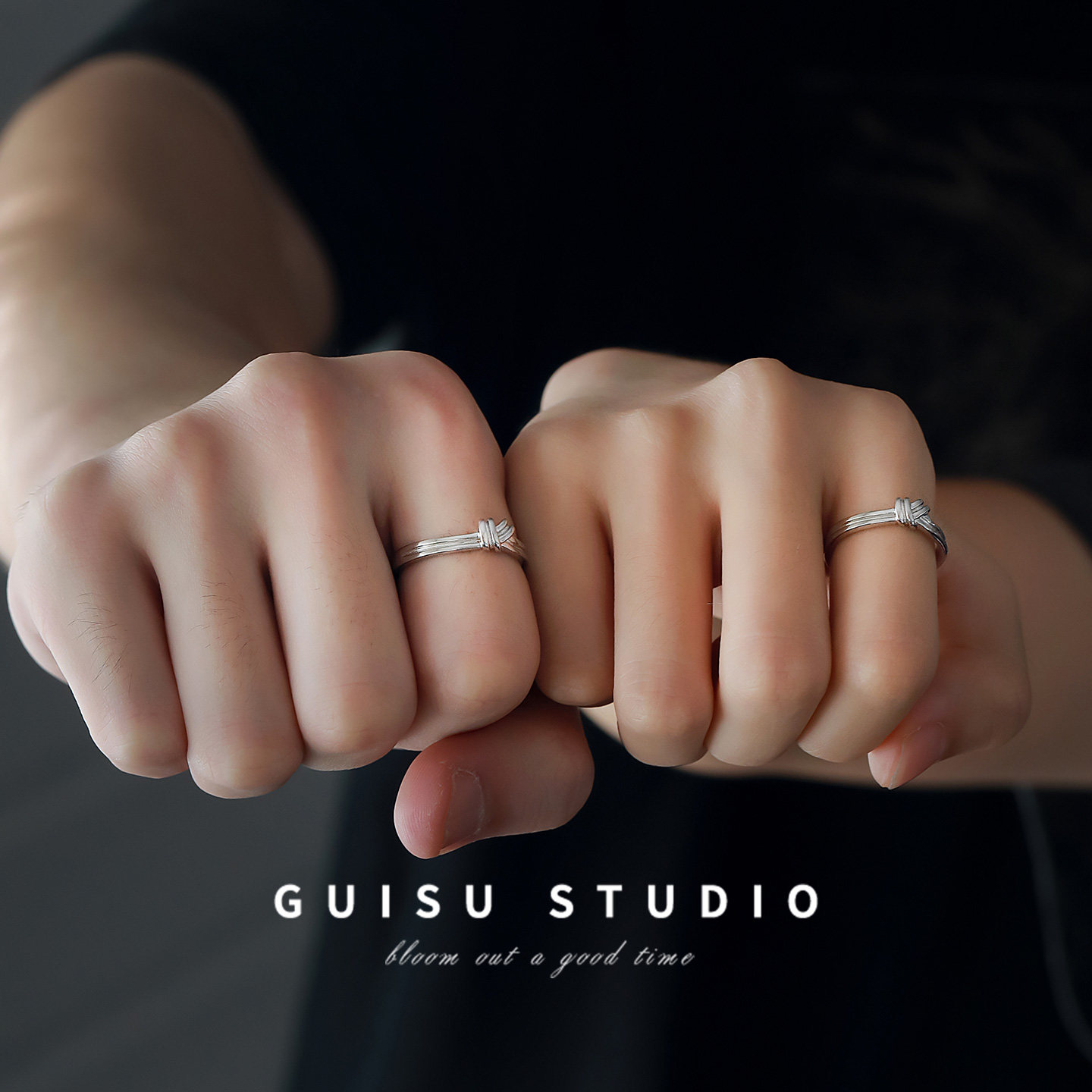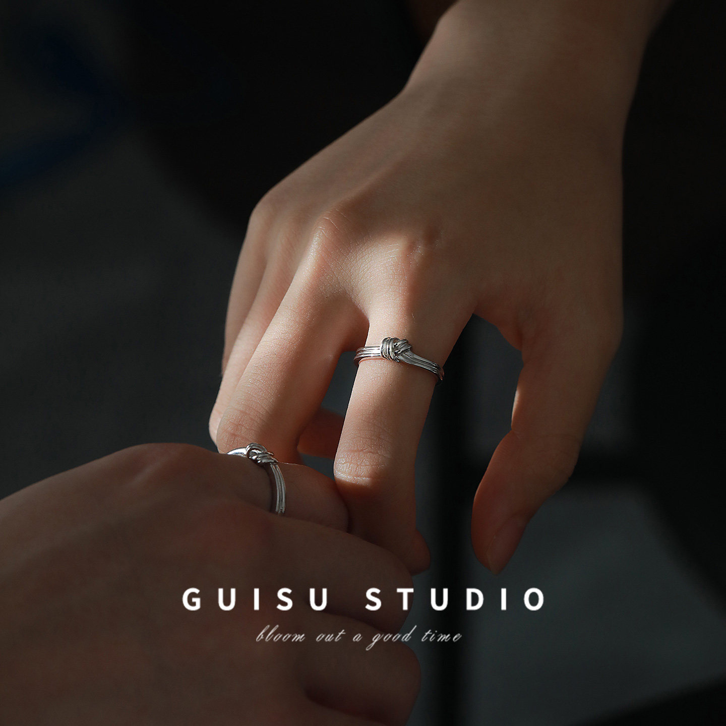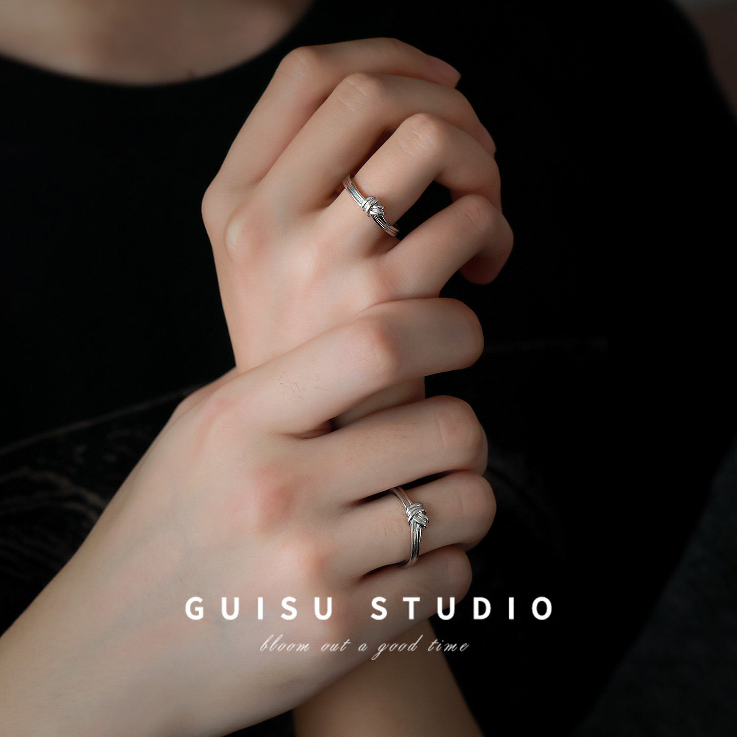GUISU归素同心结足银情侣对戒指999纯银一对小众生日礼物送男女友