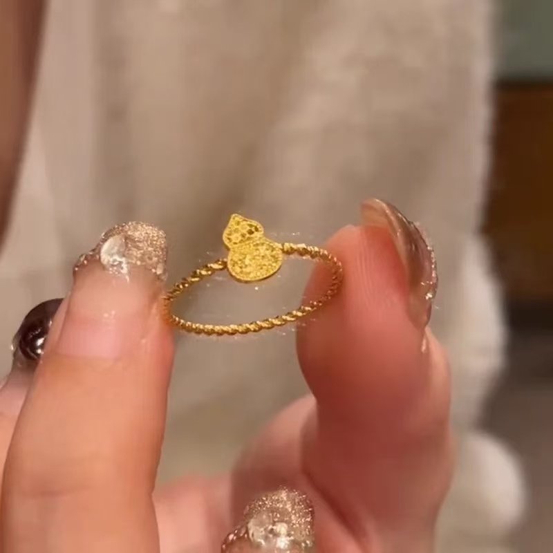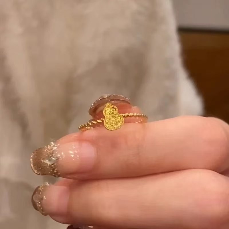 925银碎冰冰沙金鱼鳞葫芦戒指女小众设计感新中式福禄食指戒指环