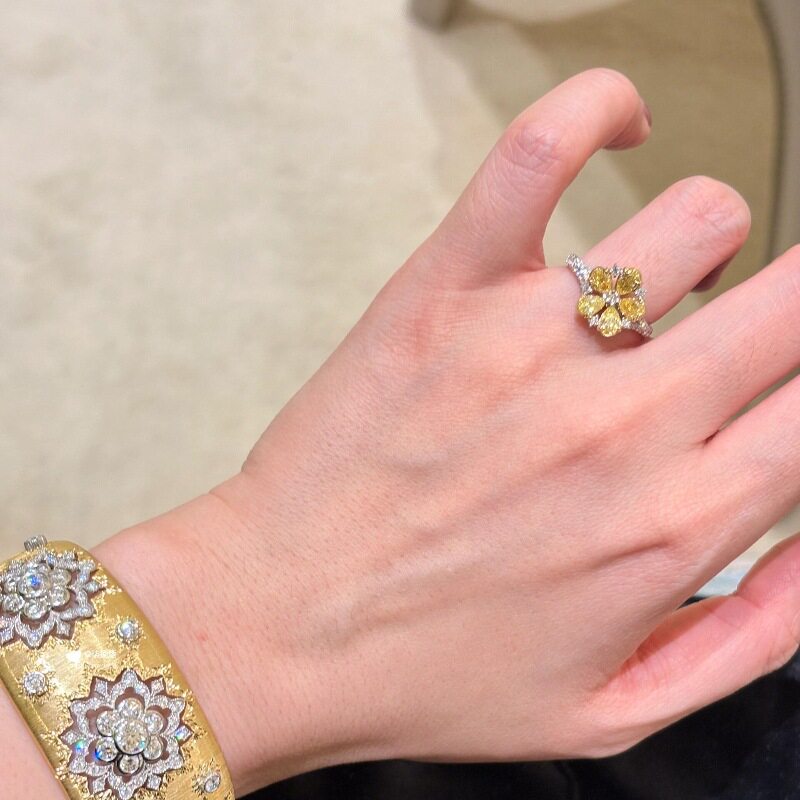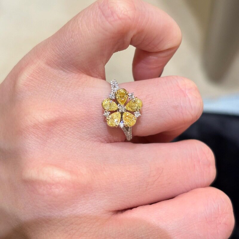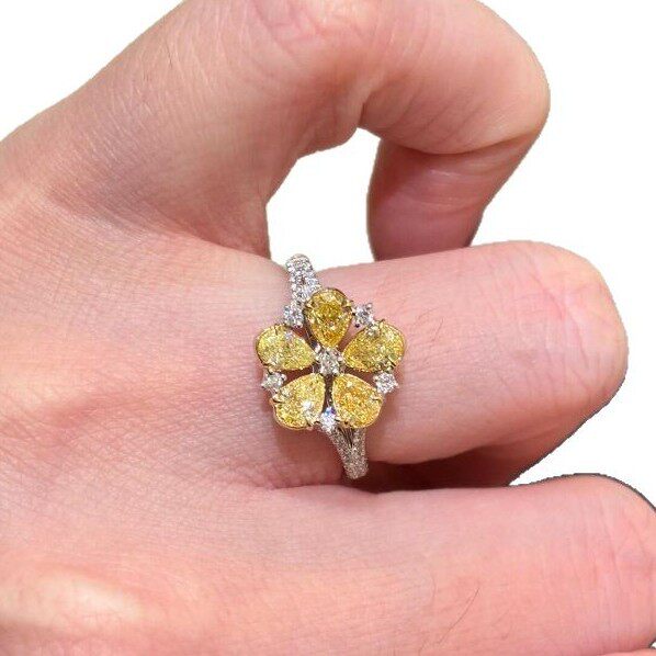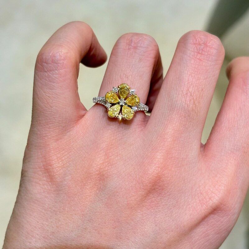 日本TopWhit法式轻奢复古镶嵌黄色锆石花朵戒指爆闪奢华精致中